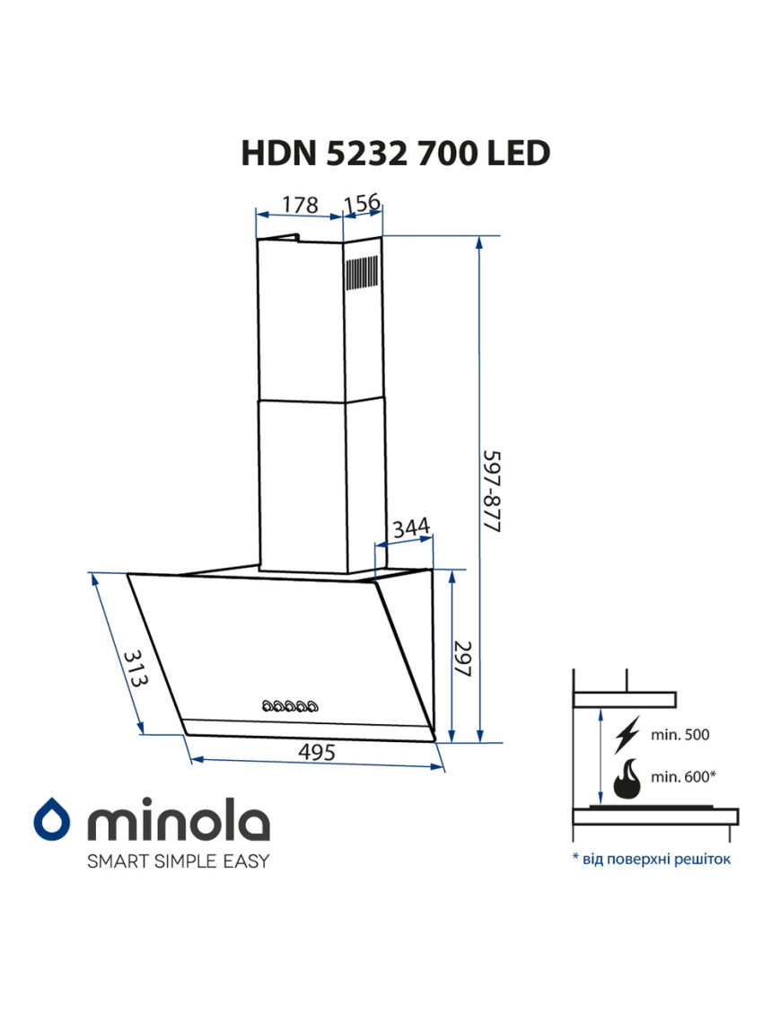 Вытяжка наклонная Minola HDN 5232 BL/INOX 700 LED