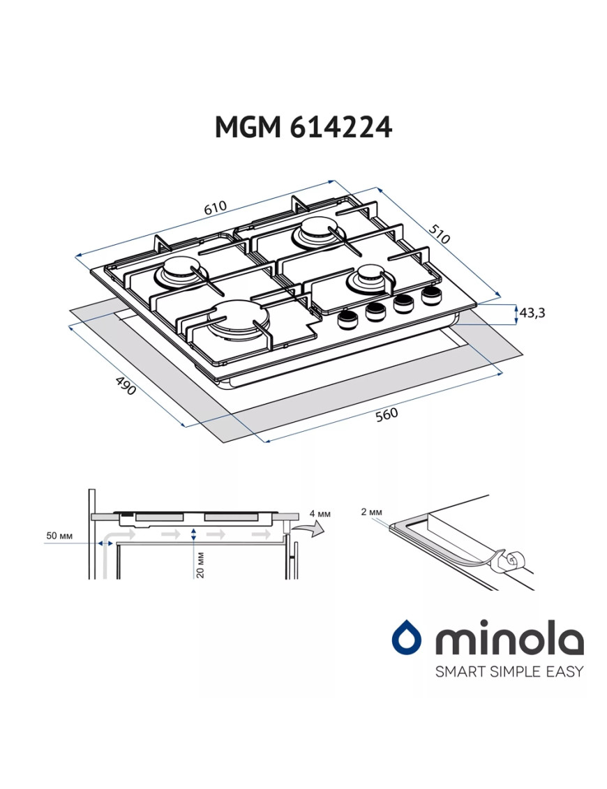 Варочная поверхность газовая Minola MGM 614224 BL
