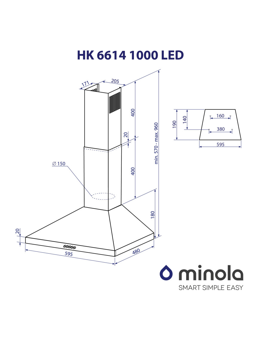 Вытяжка купольная Minola HK 6614 I 1000 LED