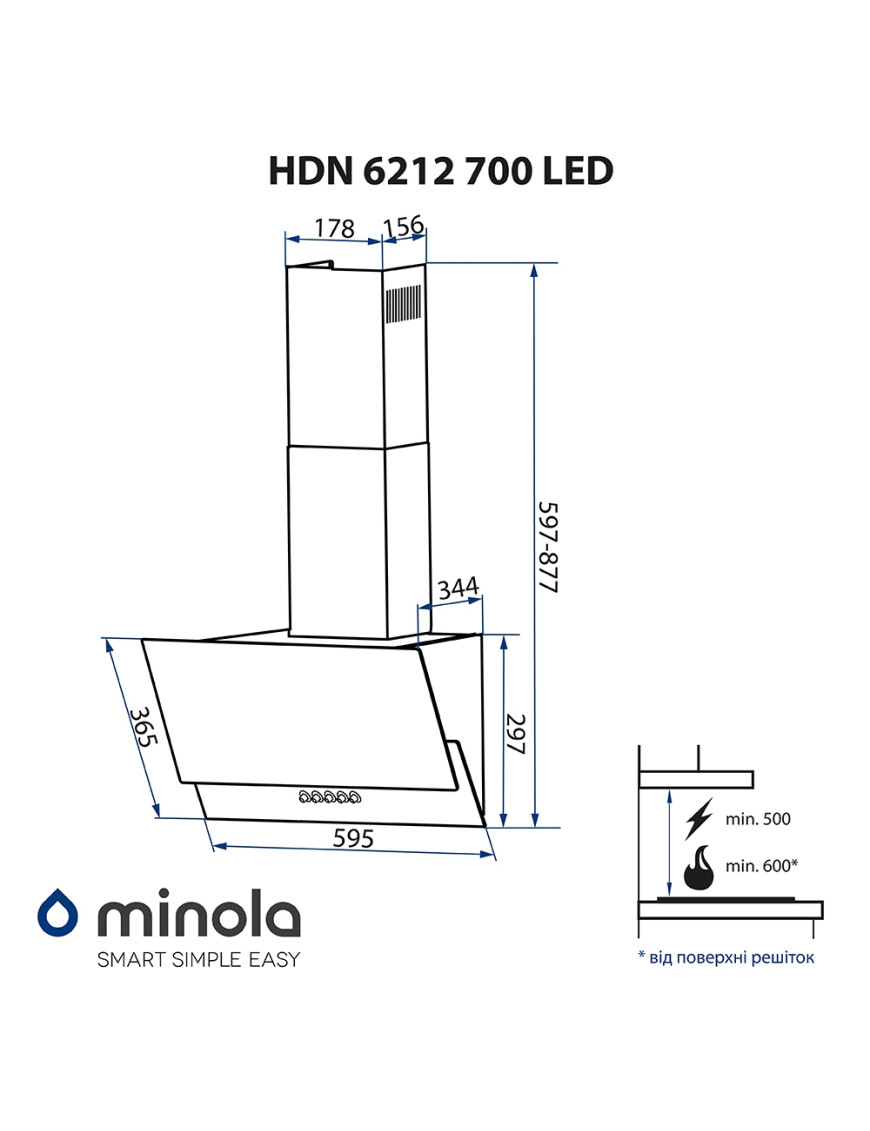 Вытяжка наклонная Minola HDN 6212 BL 700 LED