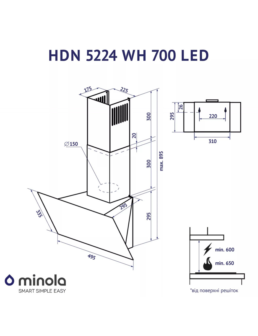 Вытяжка наклонная Minola HDN 5224 WH 700 LED