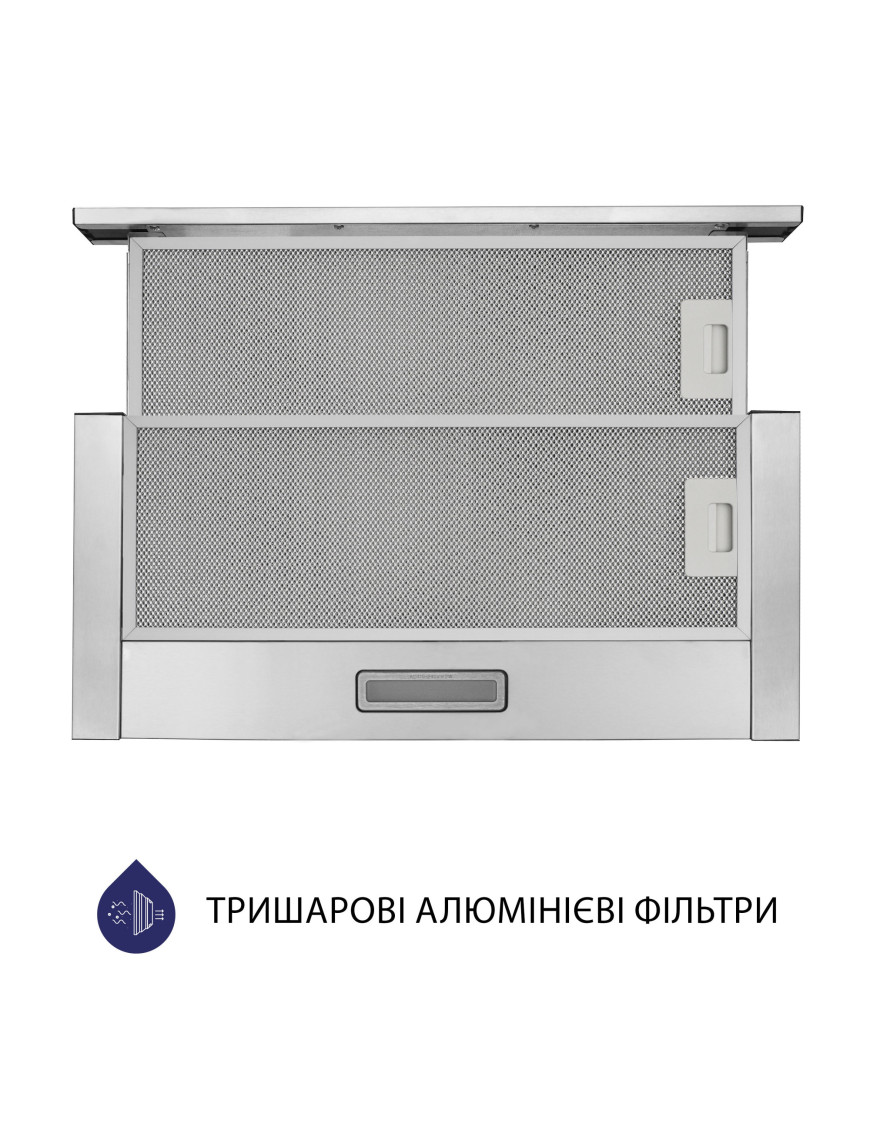 Кухонная вытяжка Minola HTL 5714 I 1100 LED оборудована двумя защитными алюминиевыми жировыми фильтрами. они изготовлены из нескольких слоев алюминиевой сетки, что обеспечивает надежную защиту двигателя и других деталей прибора от попадания жира и грязи. Очистку алюминиевого фильтра следует проводить каждые 2-3 месяца вручную в мыльном растворе или в посудомоечной машине.
