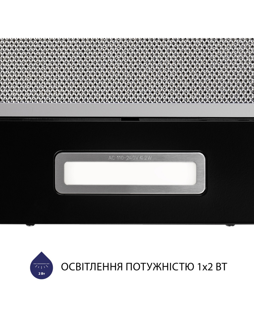 Кухонная вытяжка оборудована LED-лампой мощностью 2 Вт. Светодиоды обеспечивают комфортное дополнительное освещение варочной поверхности и являются наиболее экономным источником света.