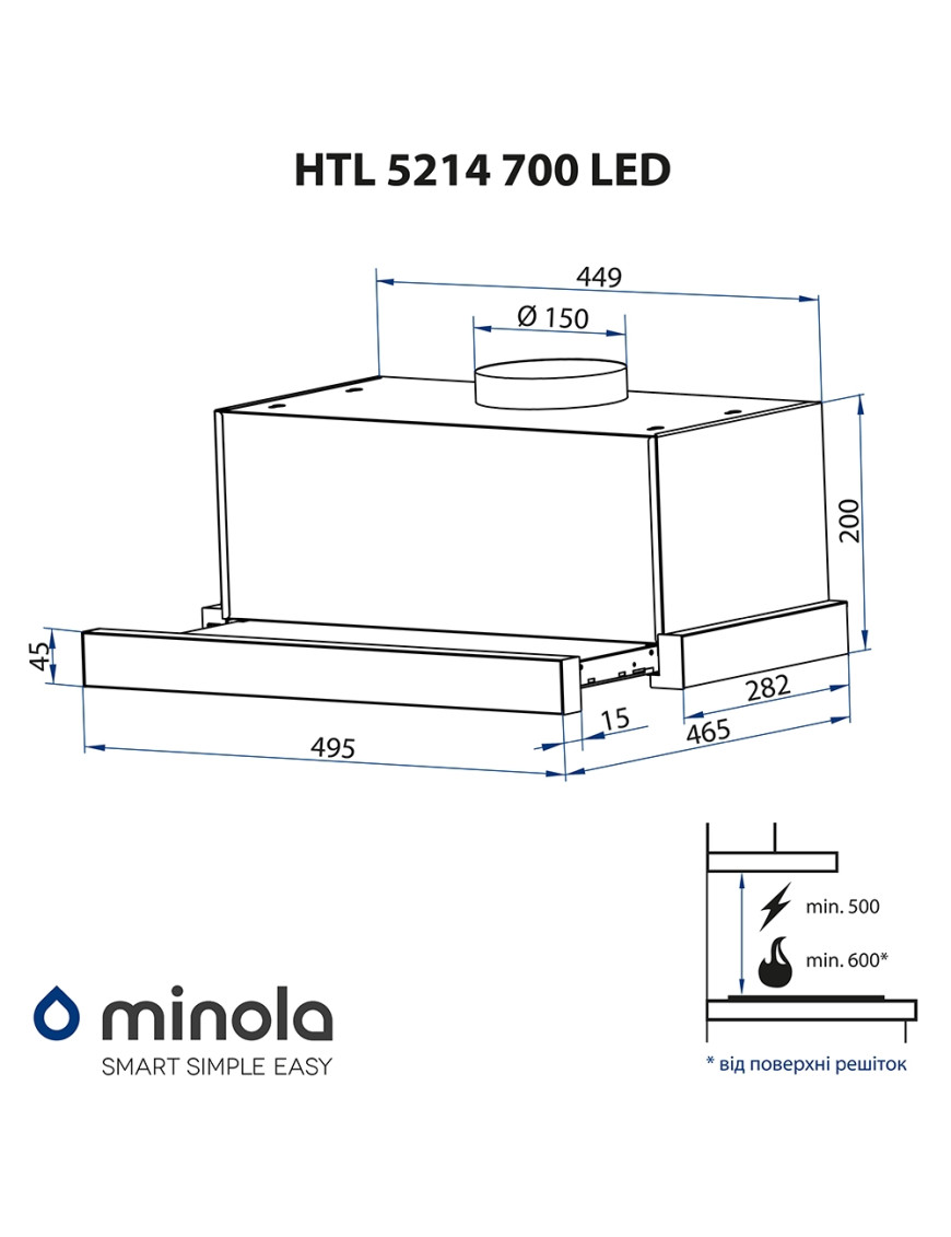 Вытяжка встраиваемая телескопическая Minola HTL 5214 I 700 LED