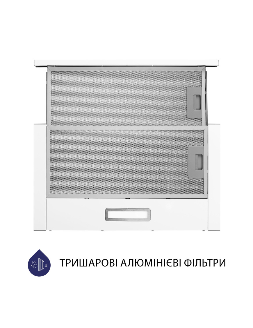 Кухонная вытяжка Minola HTL 514 WH LED оборудована двумя алюминиевыми жировыми фильтрами, состоящими из трех слоев. Они обеспечивают надежную защиту двигателя и других деталей устройства от попадания жира и испарений.