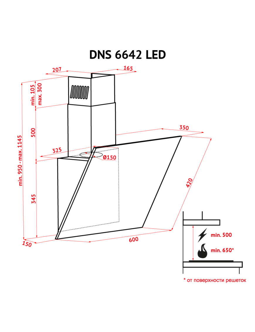 Вытяжка наклонная Perfelli DNS 6642 BL LED