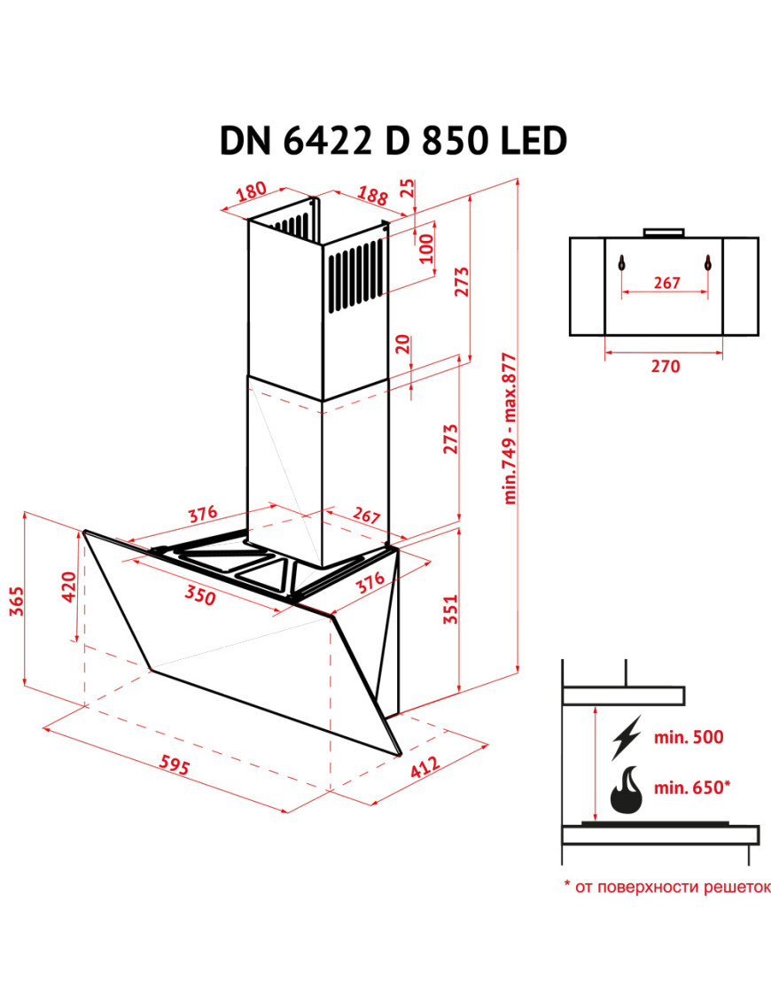 Вытяжка наклонная Perfelli DN 6422 D 850 IV LED