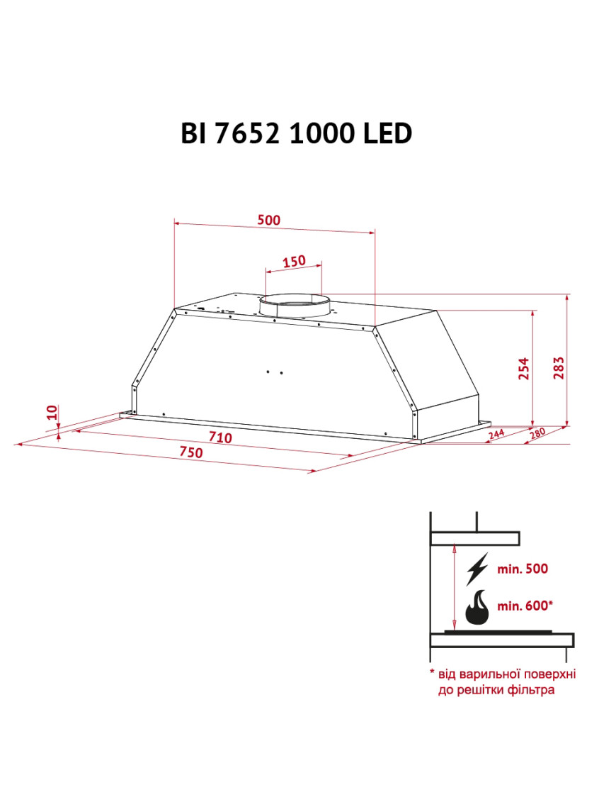 Вытяжка полновстраиваемая Perfelli BI 7652 I 1000 LED
