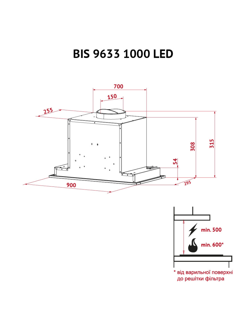 Вытяжка полновстраиваемая Perfelli BIS 9633 I 1000 LED