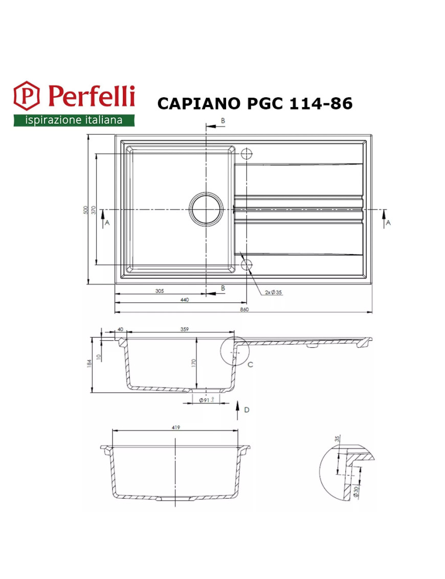 Мойка кухонная гранитная Perfelli CAPIANO PGC 114-86 LIGHT BEIGE