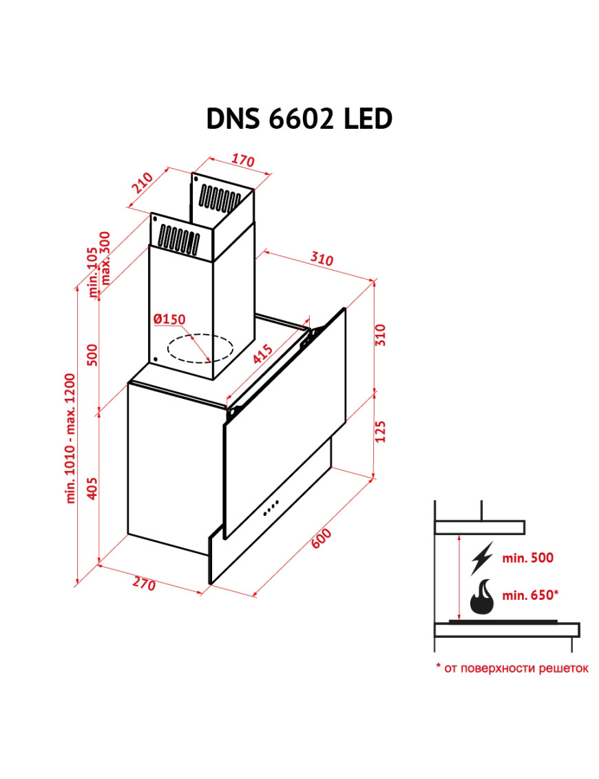 Вытяжка наклонная Perfelli DNS 6602 BL LED