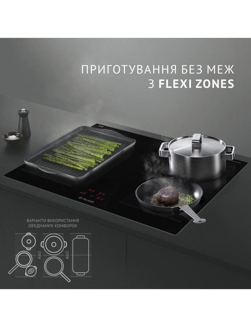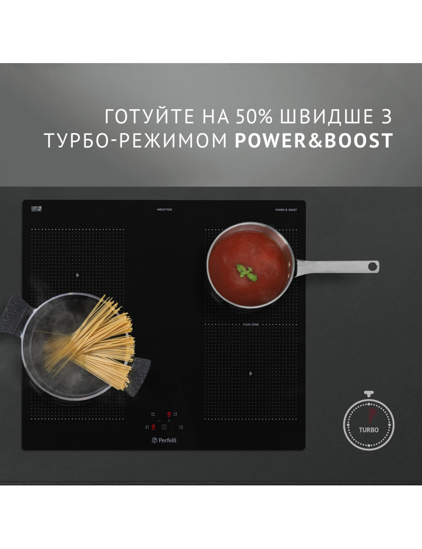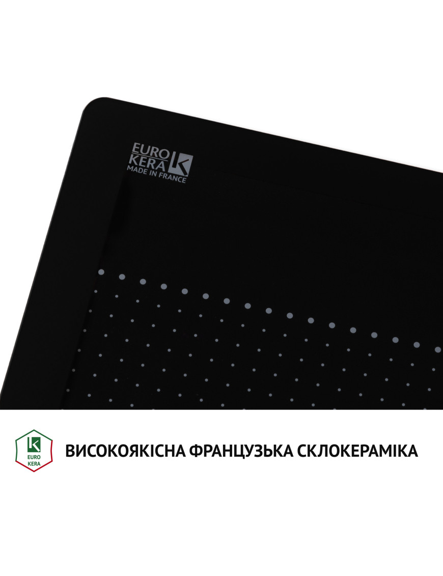 MADE IN FRANCE!!! Электрическая индукционная варочная поверхность • Ширина (мм): 590 • Материал поверхности: Стеклокерамика EuroKera • Тип нагревательных элементов: Индукционные • Цвет: черный • Управление: Сенсор • Расположение панели управления: Фронтальное по центру • Функции: 9 уровней мощности, быстрый нагрев – Booster, для каждой конфорки, блокировка клавиш, защита от детей, функция Stop&Go, таймер (для каждой конфорки, таймер минутник), Flexi zone, индикатор распознавания посуды – Pot Detection, защита от перегрева, защита от перелива, индикатор остаточного тепла "Н", автовыключение, звуковой сигнал. • Кол-во конфорок: 4 • Расширенные зоны: объединенные зоны (2шт.) • Диаметр и мощность конфорок: 4 конфорки - Ø180 мм.(P=1400 Вт; Pmax = 1850 Вт) • Макс.потребляемая мощность(Вт): 7400 • Напряжения/Частота: 220-240В - 50/60Гц • Размер прибора(мм)(ШхВхГ): 590х50х520 • Размер упаковки(мм)(ШхВхГ): 650х95х600 • Вес нетто(кг): 8,2 • Вес брутто(кг): 9,5¶