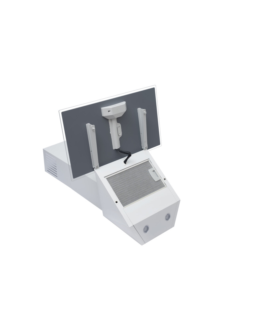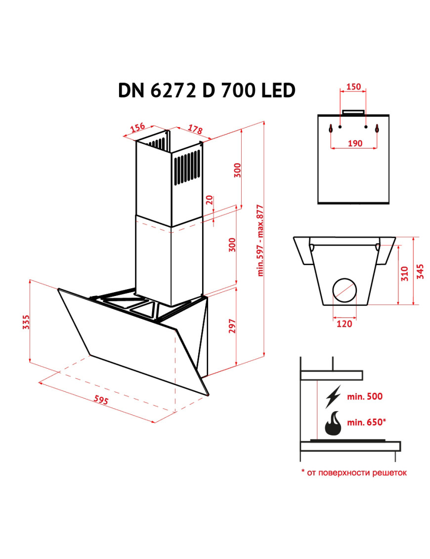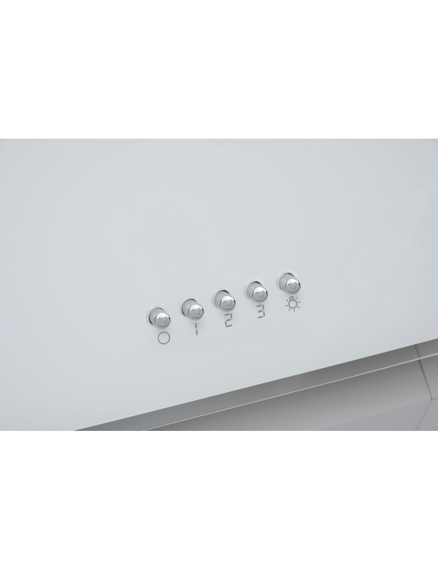 Наклонная пристенная вытяжка, производительность 700 м3/ч., ширина - 595 мм, цвет вытяжки - белый. Материал вытяжки - закаленное стекло. Управление механическое, 3 скорости. 1 мотор. Освещение 2х1 Вт LED. Алюминевый фильтр. Отвод/Рециркуляция. Уровень шума - 55 - 59 Дб