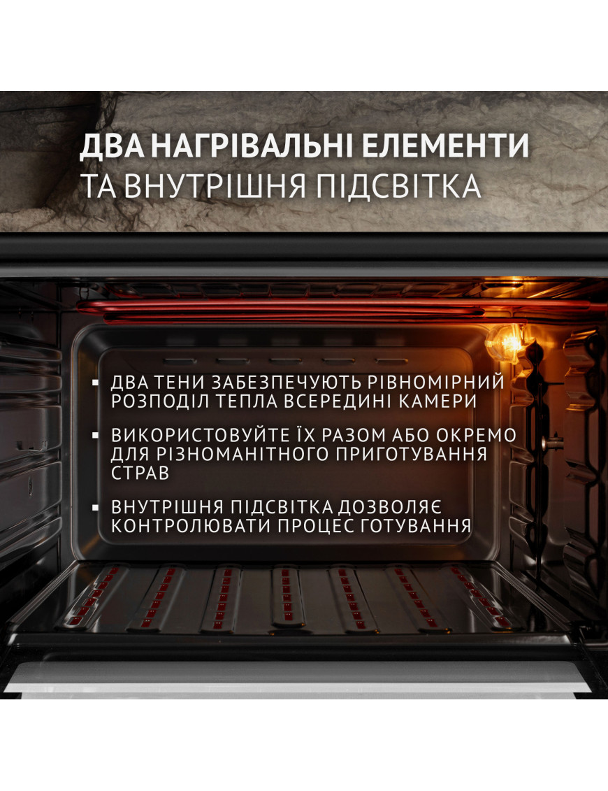 Особенности Покрытие боковых стенок термостойкой эмалью Semplice Скрытый нижний нагревательный элемент