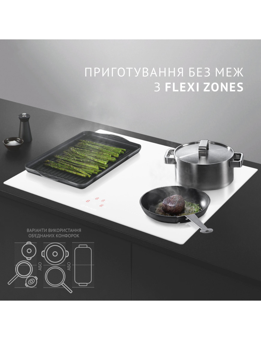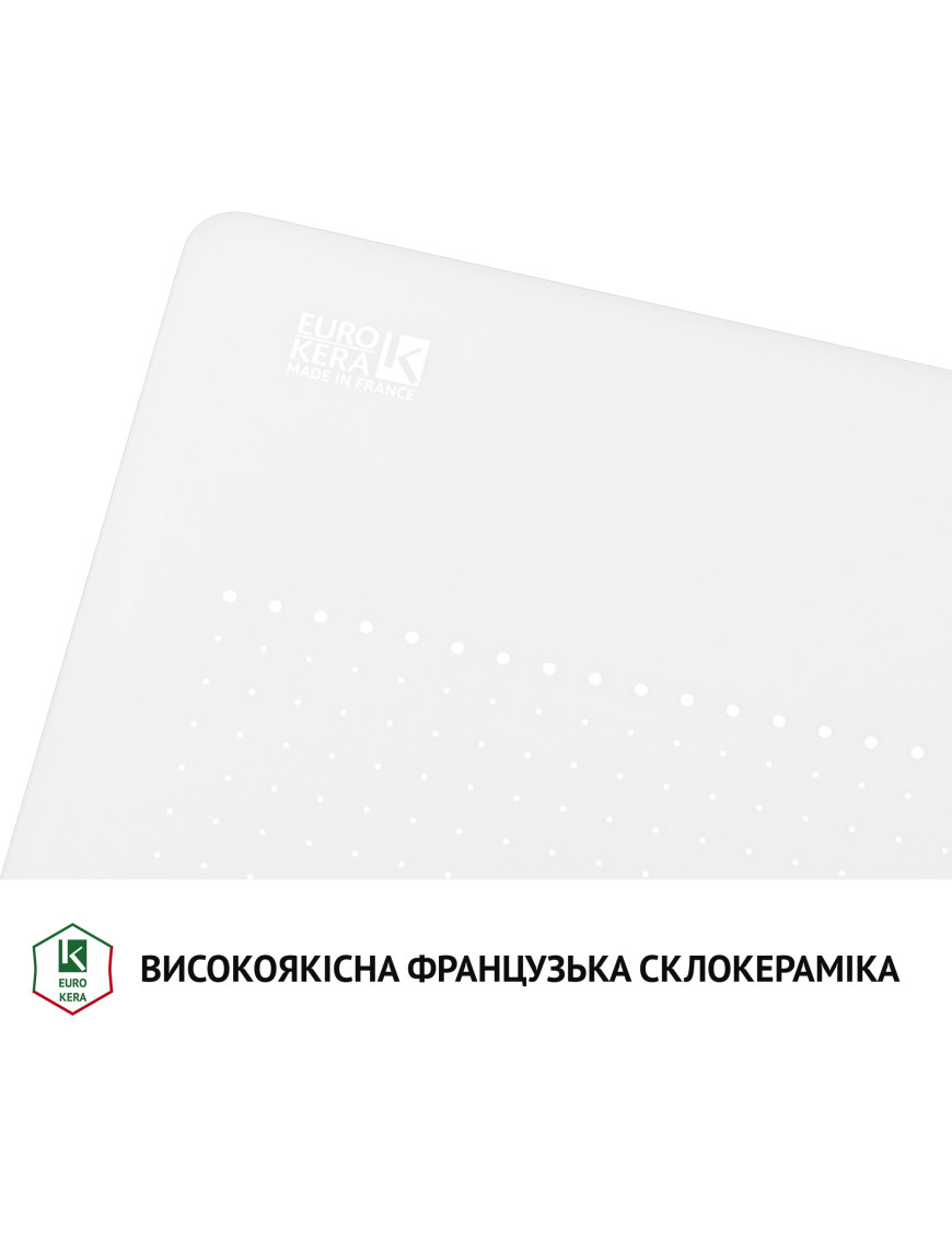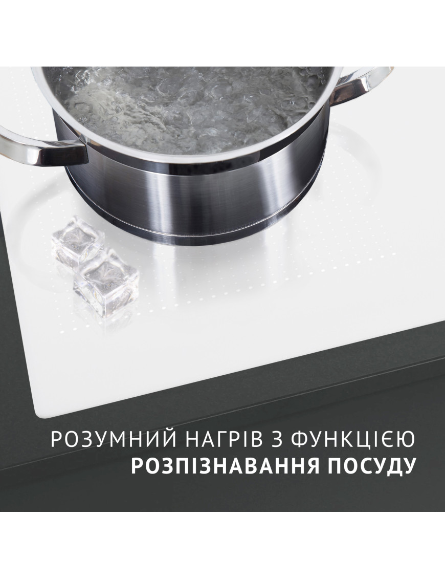 MADE IN FRANCE!!! Электрическая индукционная варочная поверхность • Ширина (мм): 590 • Материал поверхности: Стеклокерамика EuroKera • Тип нагревательных элементов: Индукционные • Цвет: белый • Управление: Сенсор • Расположение панели управления: Фронтальное по центру • Функции: 9 уровней мощности, быстрый нагрев – Booster, для каждой конфорки, блокировка клавиш, защита от детей, функция Stop&Go, таймер (для каждой конфорки, таймер минутник), Flexi zone, индикатор распознавания посуды – Pot Detection, защита от перегрева, защита от перелива, индикатор остаточного тепла "Н", автовыключение, звуковой сигнал. • Кол-во конфорок: 4 • Расширенные зоны: объединенные зоны (2шт.) • Диаметр и мощность конфорок: 4 конфорки - Ø180 мм.(P=1400 Вт; Pmax = 1850 Вт) • Макс.потребляемая мощность(Вт): 7400 • Напряжения/Частота: 220-240В - 50/60Гц • Размер прибора(мм)(ШхВхГ): 590х50х520 • Размер упаковки(мм)(ШхВхГ): 650х95х600 • Вес нетто(кг): 8,2 • Вес брутто(кг): 9,5¶
