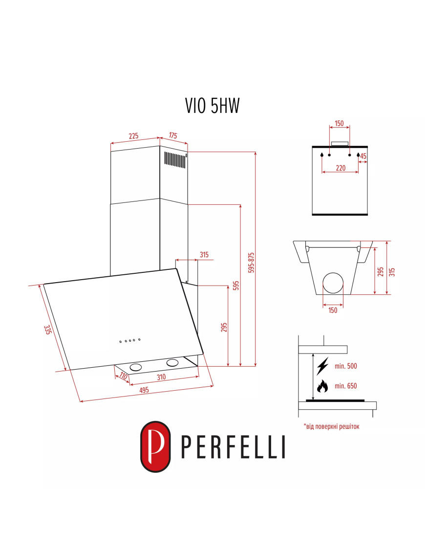 Вытяжка наклонная PERFELLI VIO 5HW NERO