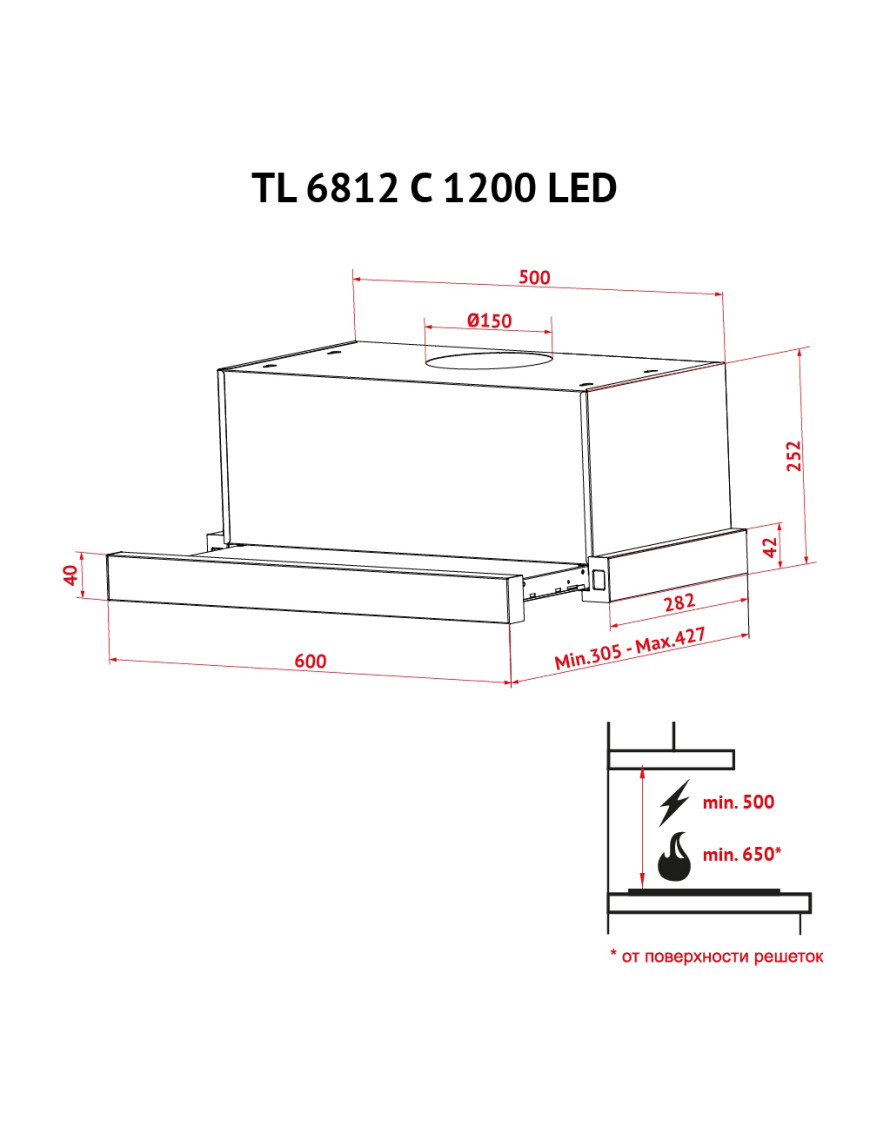 Вытяжка телескопическая PERFELLI TL 6812 C S/I 1200 LED