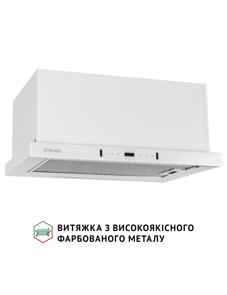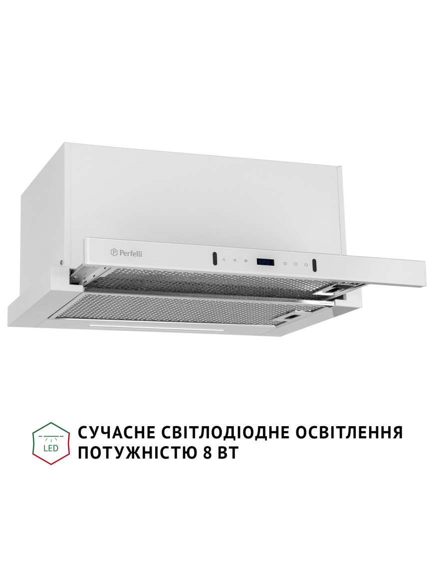 Телескопическая вытяжка PERFELLI ISEO 6PWX BIANCO привлекает дизайном и современным подходом в разработке вытяжек для всех, кто желает сделать свою кухню стильной и функциональной. Стандартная ширина 60 см позволяет использовать эту модель на кухне любых размеров.
