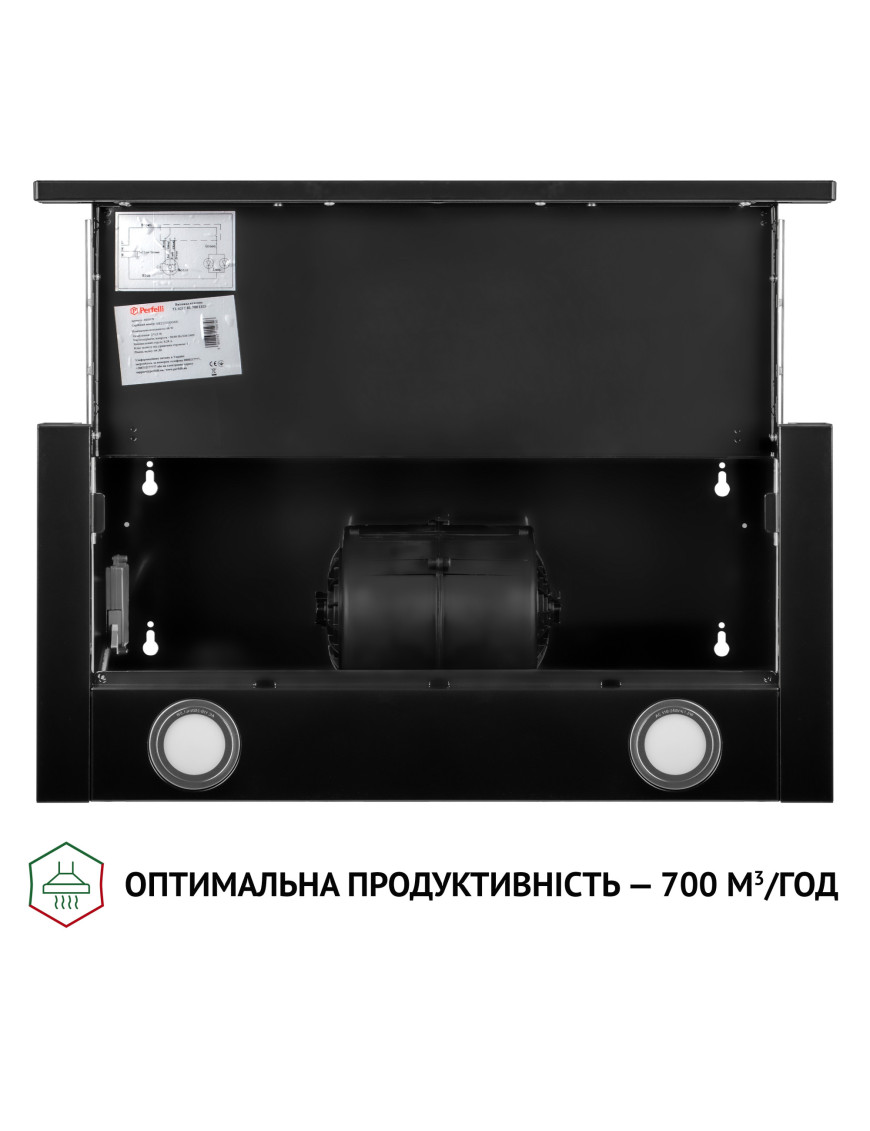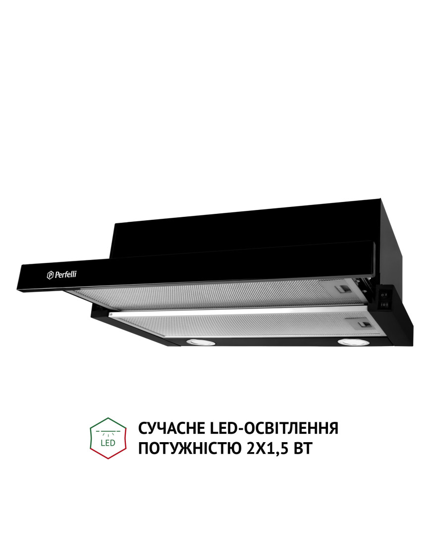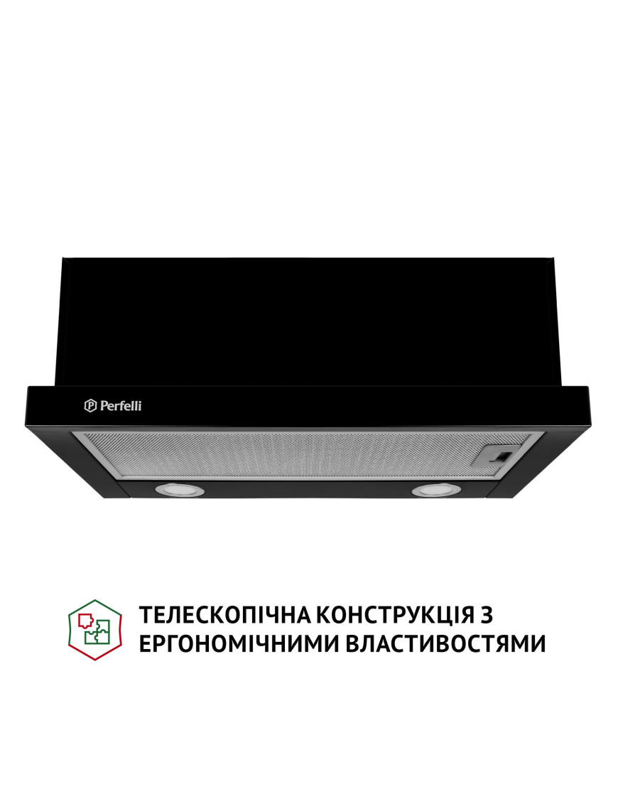 Телескопическая кухонная вытяжка Perfelli TL 6212 BL 700 LED обладает эргономичными свойствами, поэтому позволяет рационально использовать пространство в зоне над варочной поверхностью. Конфигурация модели включает:
