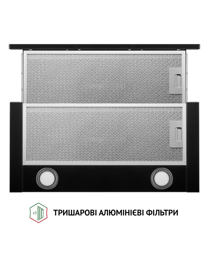 Управлять вытяжкой удобно и легко! Механическая панель управления состоит из переключателей скоростей и включения/выключения освещения. Практичное расположение механических переключателей управления по бокам позволит осуществлять быстрые манипуляции с устройством без лишних усилий.