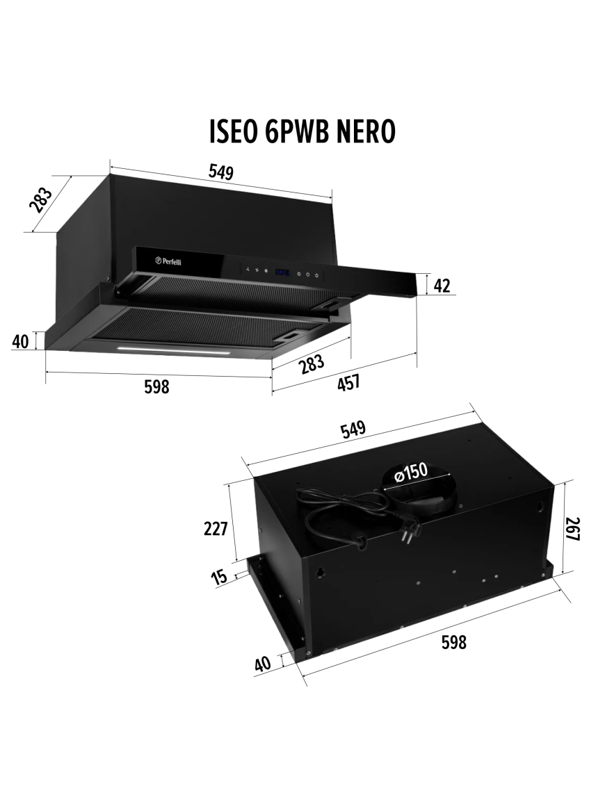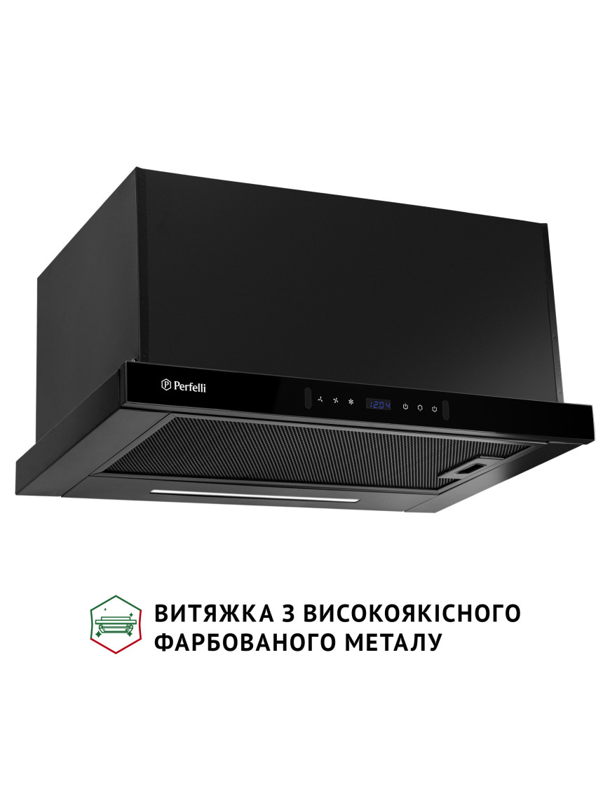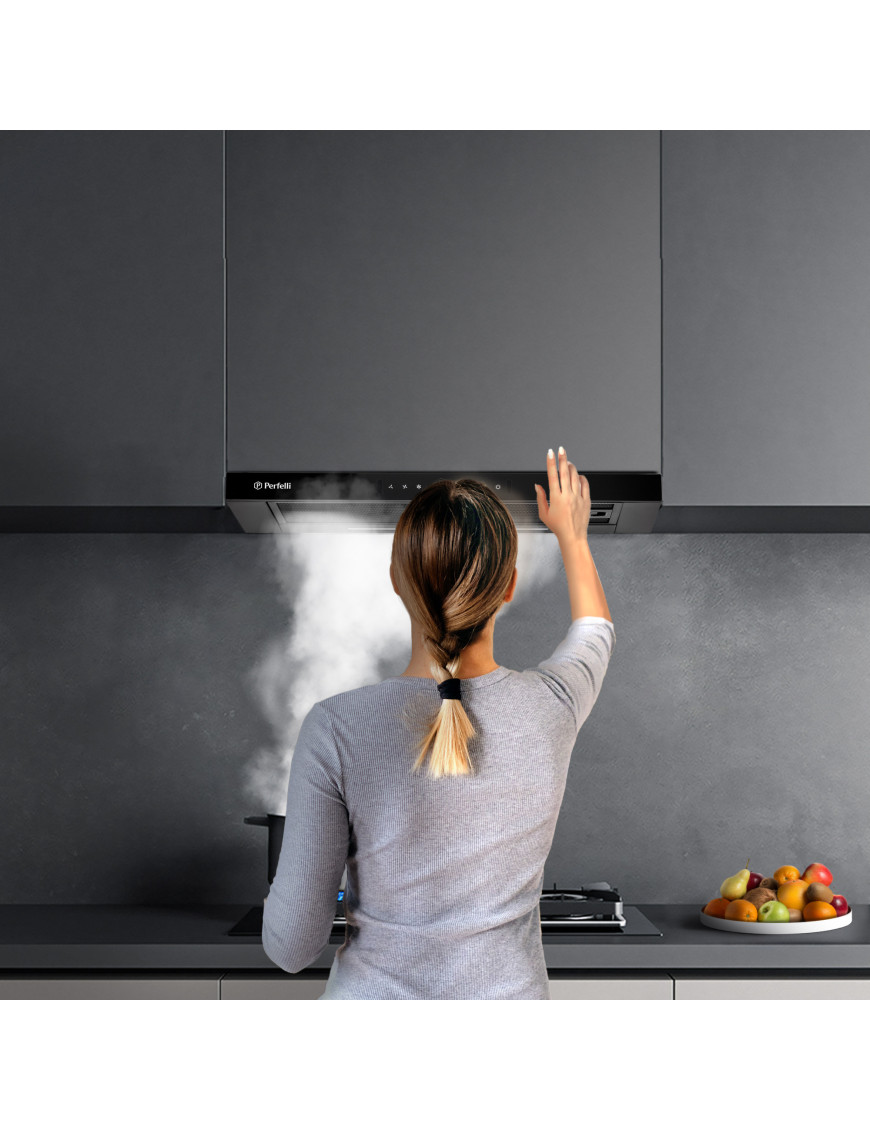 Телескопическая вытяжка PERFELLI ISEO 6PWB NERO привлекает дизайном и современным подходом в разработке вытяжек для всех, кто желает сделать свою кухню стильной и функциональной. Стандартная ширина 60 см позволяет использовать эту модель на кухне любых размеров.