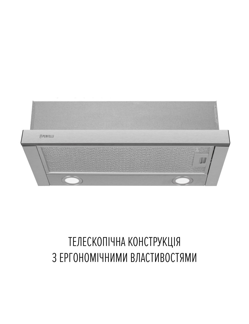 Телескопическая кухонная вытяжка PERFELLI TL 6822 I 1200 LED обладает эргономичными свойствами, поэтому позволяет рационально использовать пространство в зоне над варочной поверхностью. Конфигурация модели включает: