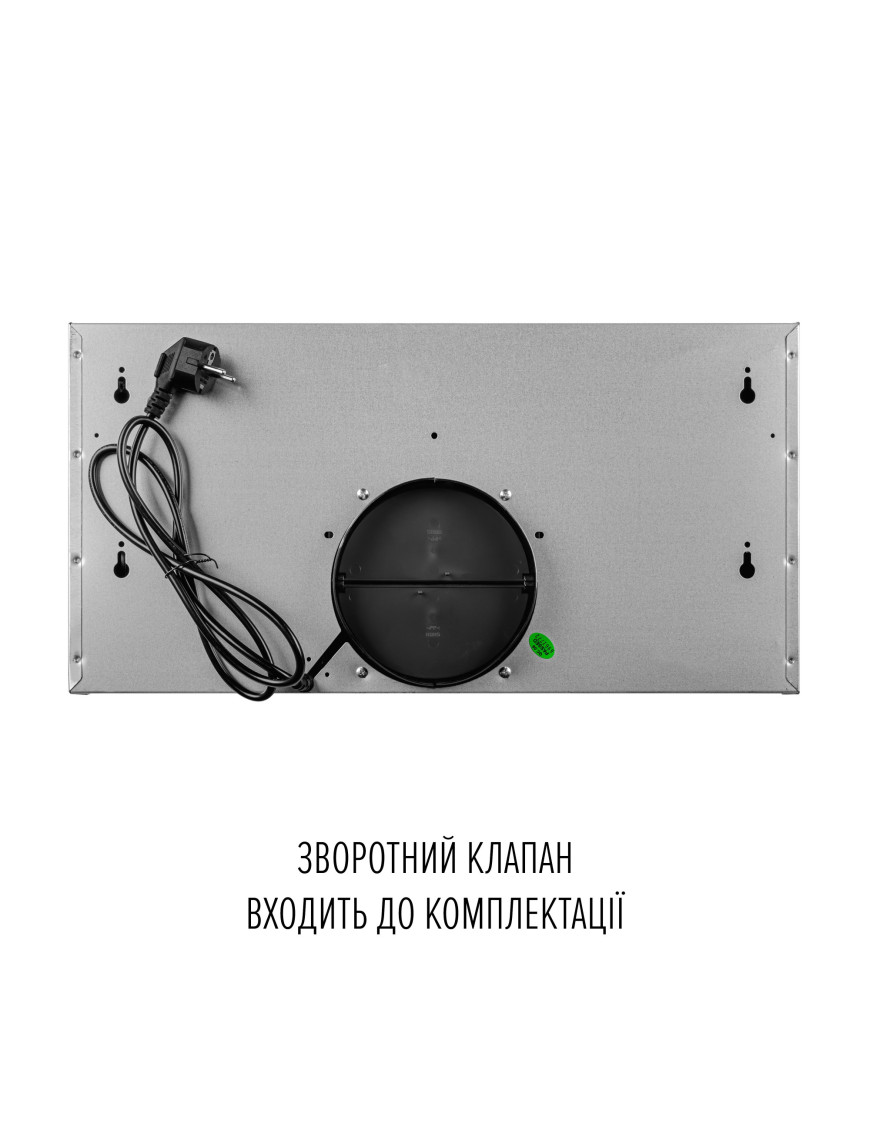 Освещение вытяжки состоит из двух LED-ламп, мощностью по 1.5 Вт, которые расположены на задней части вытяжки и способствуют лучшему освещению рабочей поверхности. Подсветка является комфортной для глаз и работает как дополнительный источник освещения на кухне. Рабочий ресурс светодиодов в разы выше, чем у обычных ламп, а потребление энергии минимальное. Кроме того, светодиоды достаточно выносливы во время активной эксплуатации.