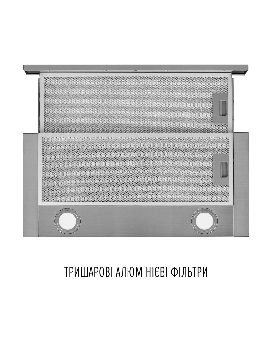 Вытяжка оборудована практичными трехслойными алюминиевыми фильтрами, которые можно легко вымыть в теплой мыльной воде или в посудомоечной машине.