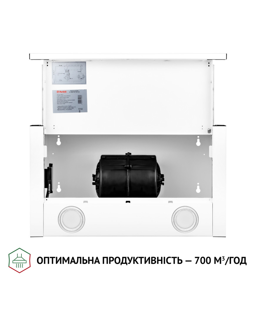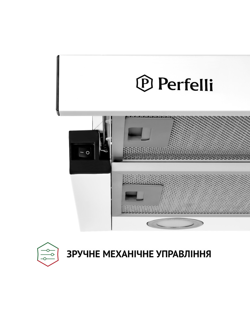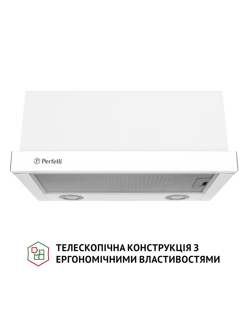 Телескопическая кухонная вытяжка Perfelli TL 5212 WH 700 LED обладает эргономичными свойствами, поэтому позволяет рационально использовать пространство в зоне над варочной поверхностью. Конфигурация модели включает: