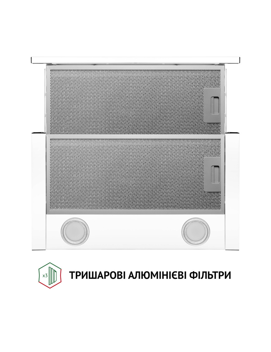 Управлять вытяжкой удобно и легко! Механическая панель управления состоит из переключателей скоростей и включения/выключения освещения. Практичное расположение механических переключателей управления по бокам позволит осуществлять быстрые манипуляции с устройством без лишних усилий.