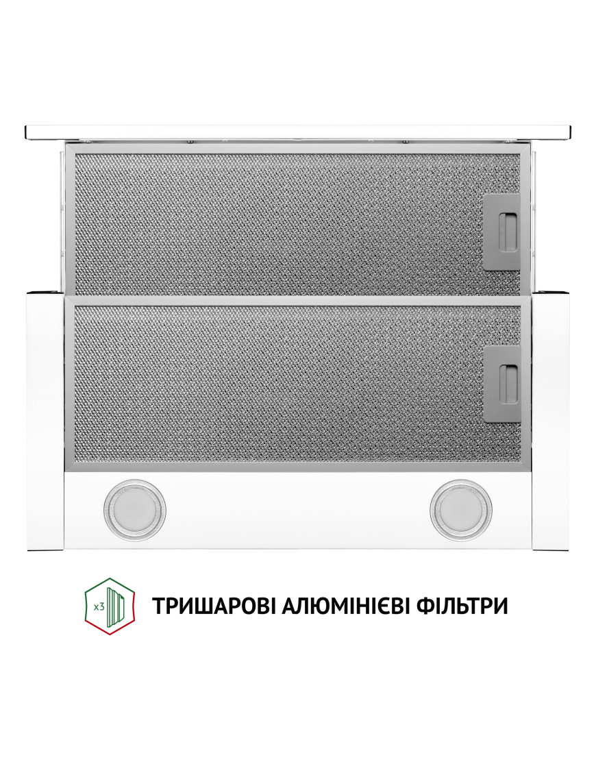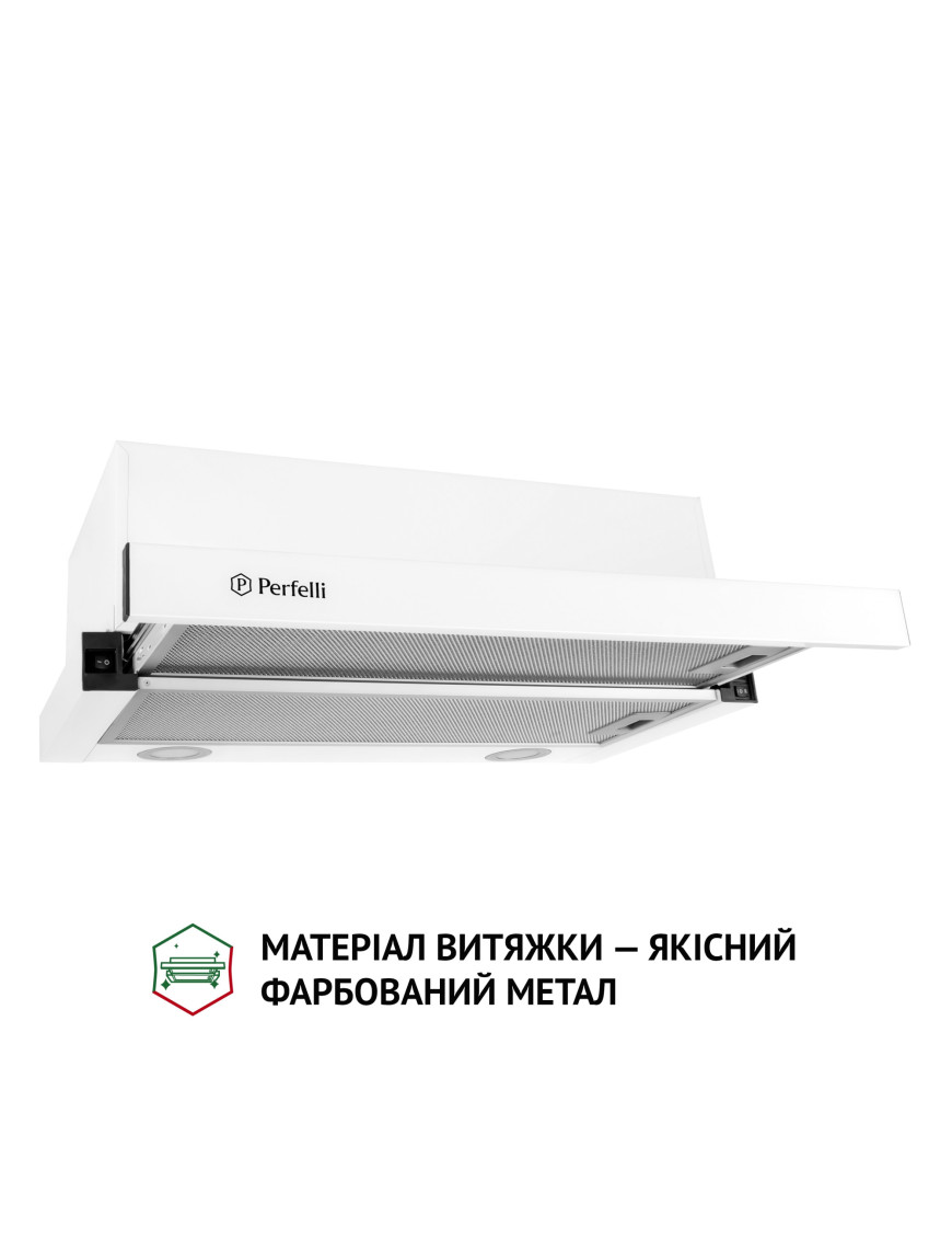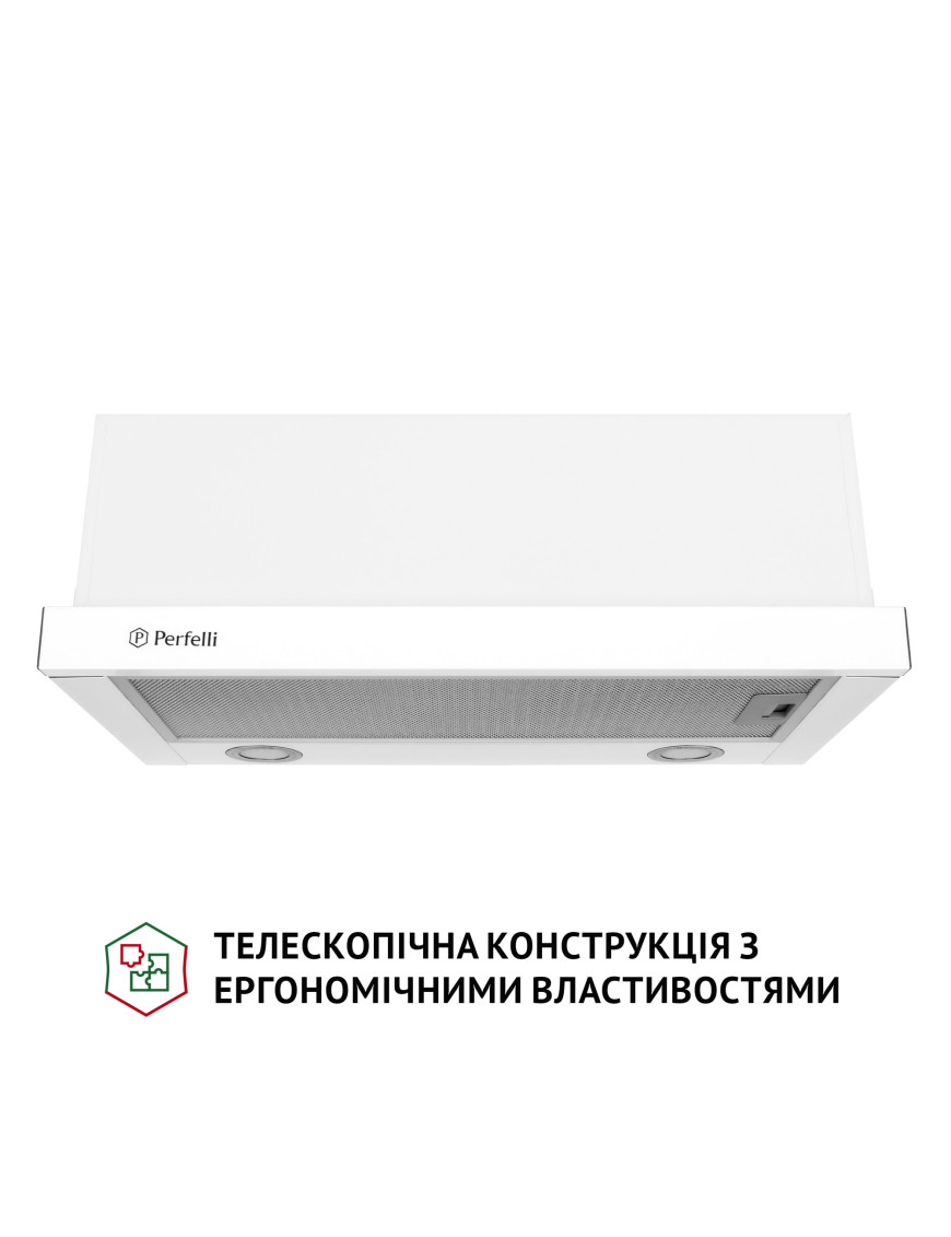 Телескопическая кухонная вытяжка Perfelli TL 6212 WH 700 LED обладает эргономичными свойствами, поэтому позволяет рационально использовать пространство в зоне над варочной поверхностью. Конфигурация модели включает: