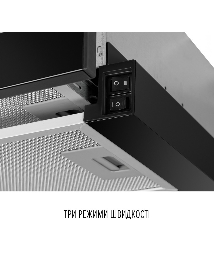 Вытяжка для кухни работает на трех скоростях, что позволяет выбирать нужную интенсивность очистки воздуха в зависимости от его загрязненности.