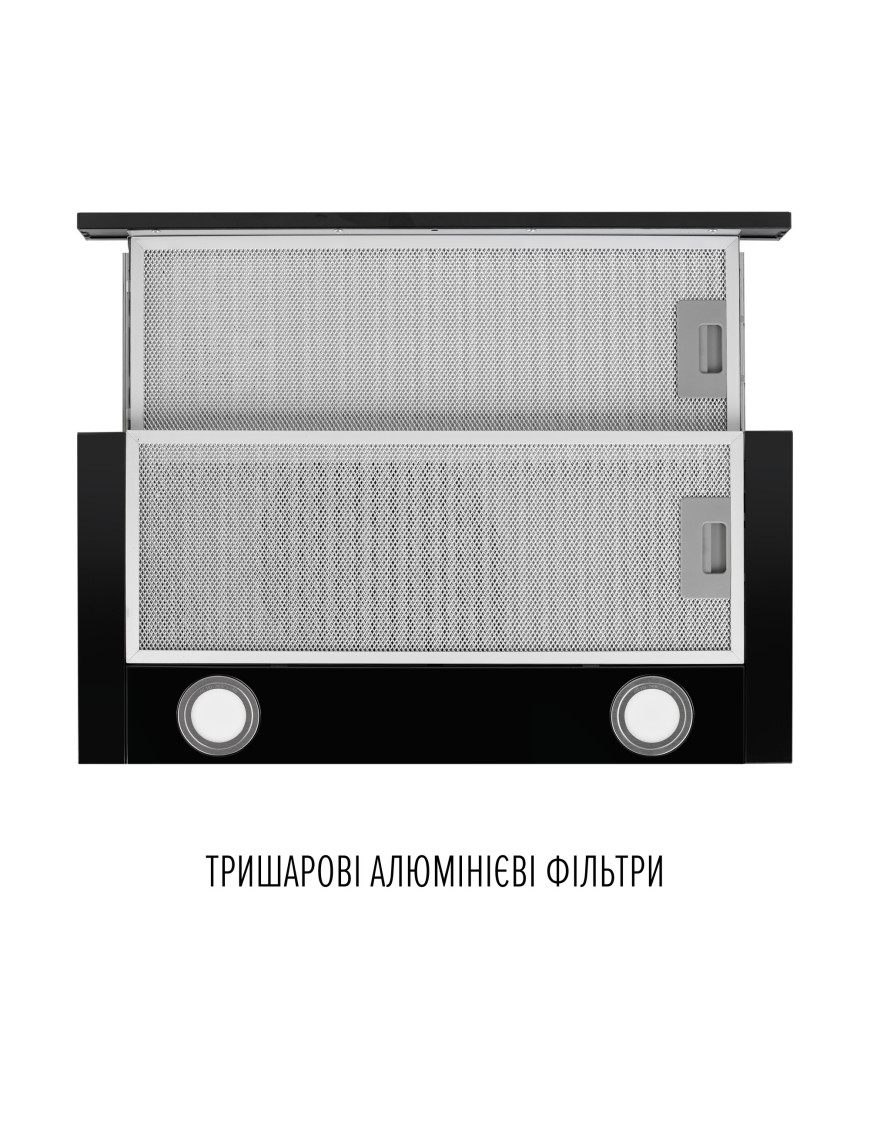 Вытяжка оборудована двумя трехслойными алюминиевыми фильтрами, которые эффективно защищают мотор и другие детали устройства от загрязнения жиром и испарениями. Их можно легко вымыть в теплой мыльной воде или в посудомоечной машине.