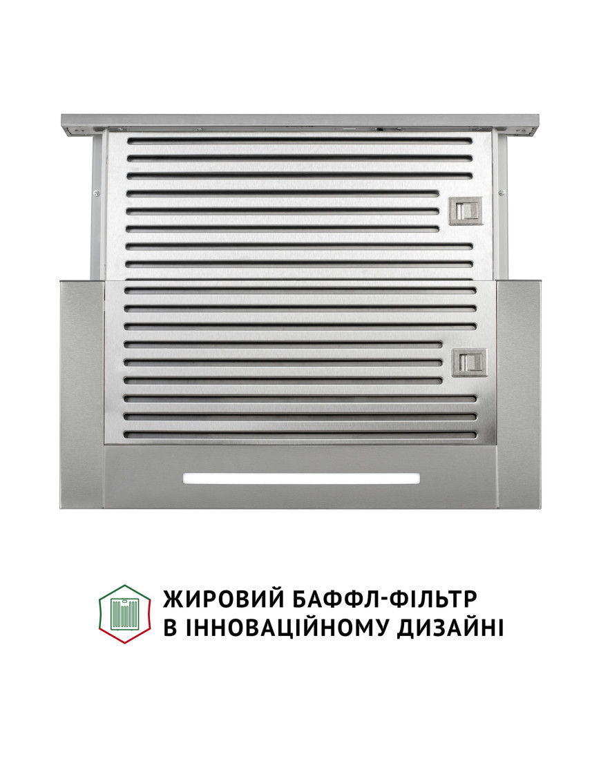 Функция таймера позволяет настроить вытяжку на автоматическое выключение через 15 минут, что удобно для очистки воздуха после завершения приготовления пищи без дополнительных усилий. - Оснащена двумя баффл-фильтрами.2 жироулавливающих баффл-фильтра эффективно задерживают жир и частицы загрязнений, что продлевает срок службы вытяжки и облегчает ее обслуживание.