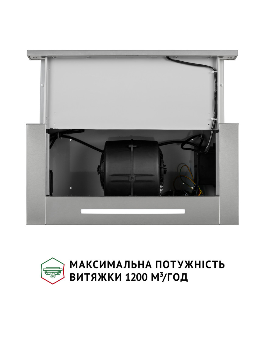 - Мотор на 230 Вт и максимальная производительность 1200 м³/ч.