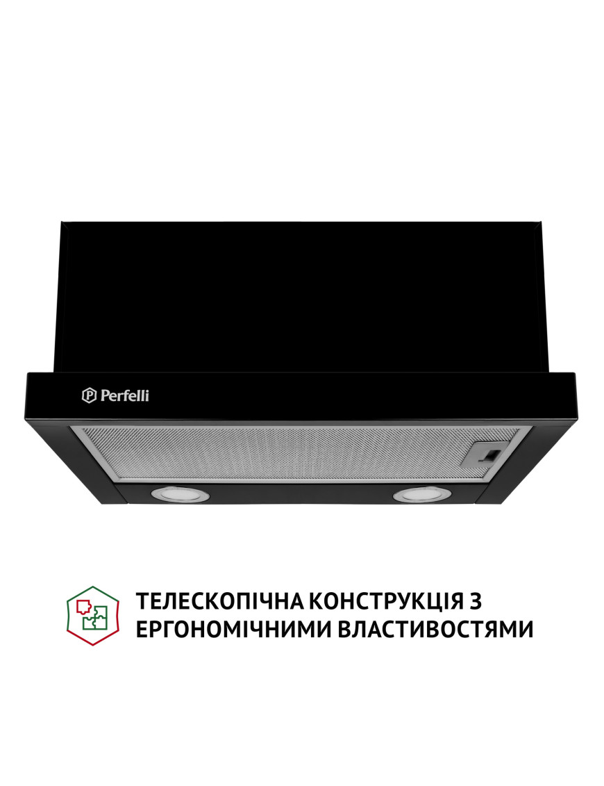 Телескопическая кухонная вытяжка Perfelli TL 5212 BL 700 LED обладает эргономичными свойствами, поэтому позволяет рационально использовать пространство в зоне над варочной поверхностью. Конфигурация модели включает: