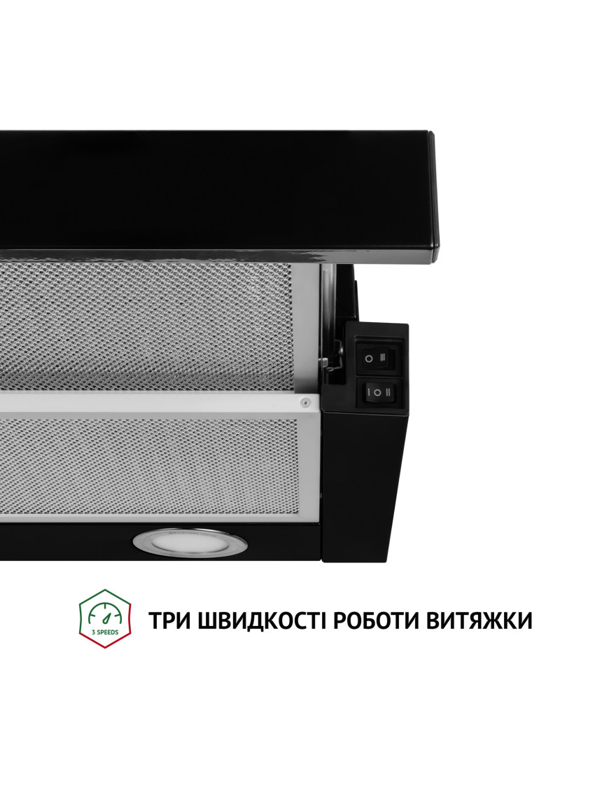 Вытяжка для кухни работает на трех скоростях, что позволяет выбирать нужную интенсивность очистки воздуха в зависимости от его загрязненности.