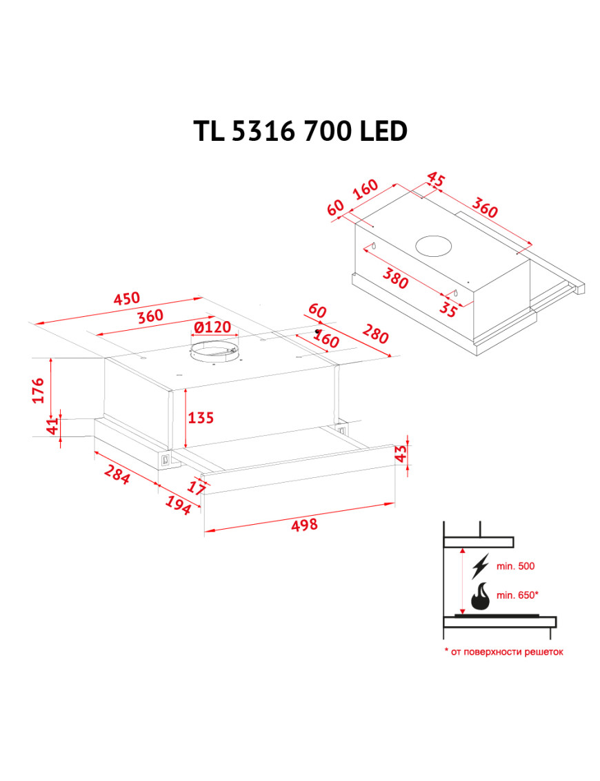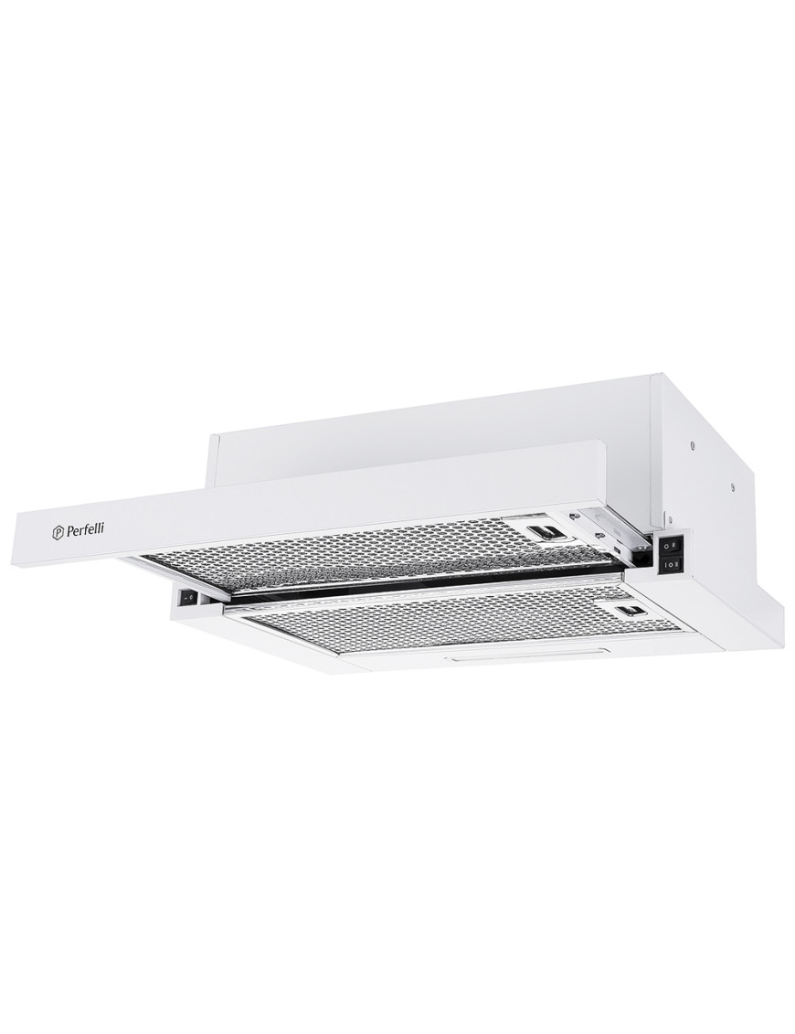 Современный дизайн телескопической вытяжки предназначен для монтажа в нижнюю часть кухонного шкафа таким образом, что в нерабочем состоянии ее конструкция не будет выступать за линию мебели. А во время работы выдвижная панель будет выглядеть, как стильное дополнение к общему дизайну интерьера комнаты. Perfelli TL 5316 WH 700 LED изготовлена в белом цвете и идеально дополнит светлый кухонный гарнитур. Ширина прибора составляет 50 см, что является стандартным размером и подходит для размещения над поверхностями для приготовления пищи с подобным размером.