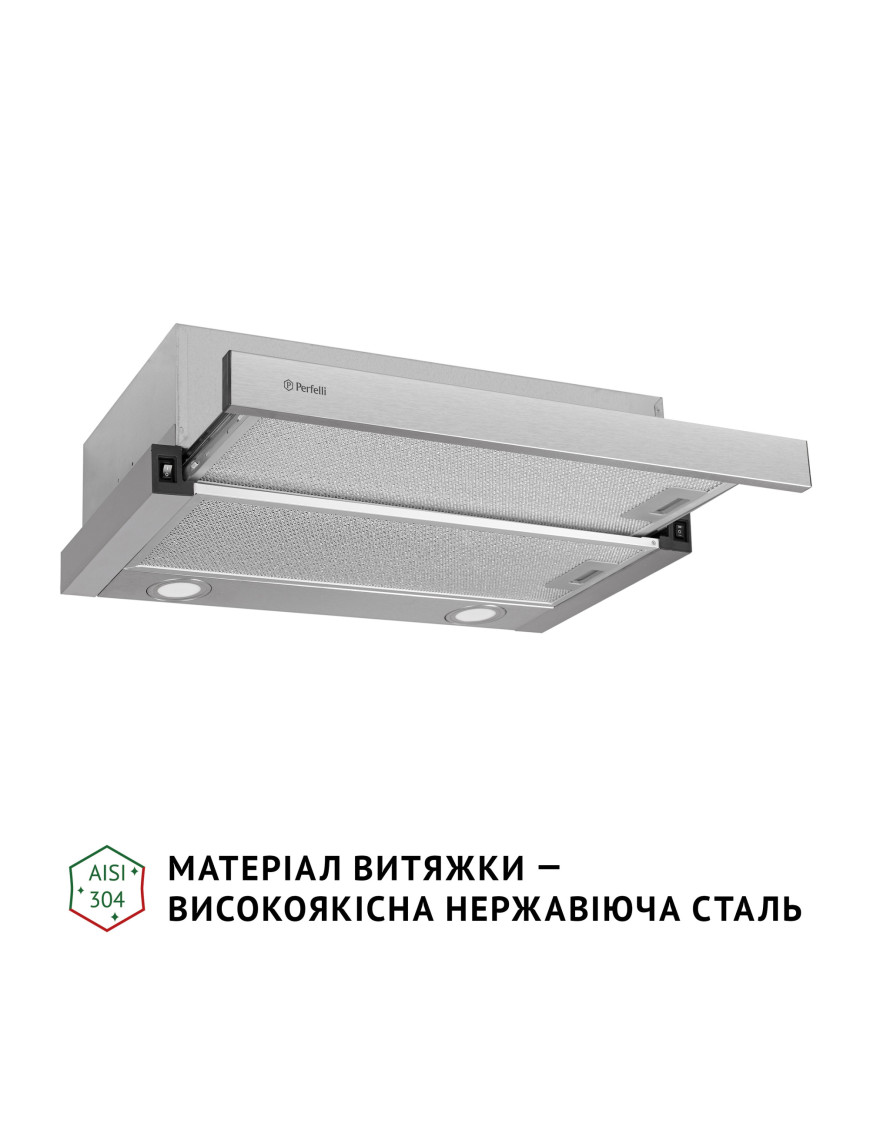 Телескопическая кухонная вытяжка Perfelli TL 602 I LED обладает эргономичными свойствами, поэтому позволяет рационально использовать пространство в зоне над варочной поверхностью. Конфигурация модели включает: