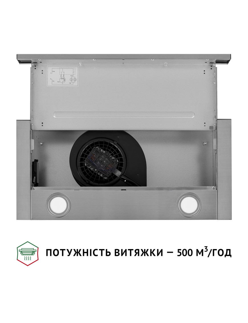 Освещение вытяжки состоит из двух LED-ламп, мощностью по 1.5 Вт, которые расположены на задней части вытяжки и способствуют лучшему освещению рабочей поверхности. Подсветка является комфортной для глаз и работает как дополнительный источник освещения на кухне. Рабочий ресурс светодиодов в разы выше, чем у обычных ламп, а потребление энергии минимальное. Кроме того, светодиоды достаточно выносливы во время активной эксплуатации.
