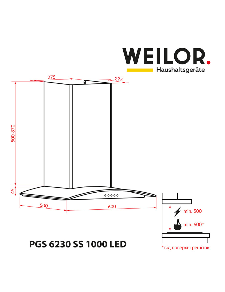 Вытяжка со стеклом WEILOR PGS 6230 SS 1000 LED