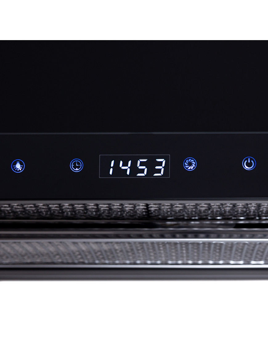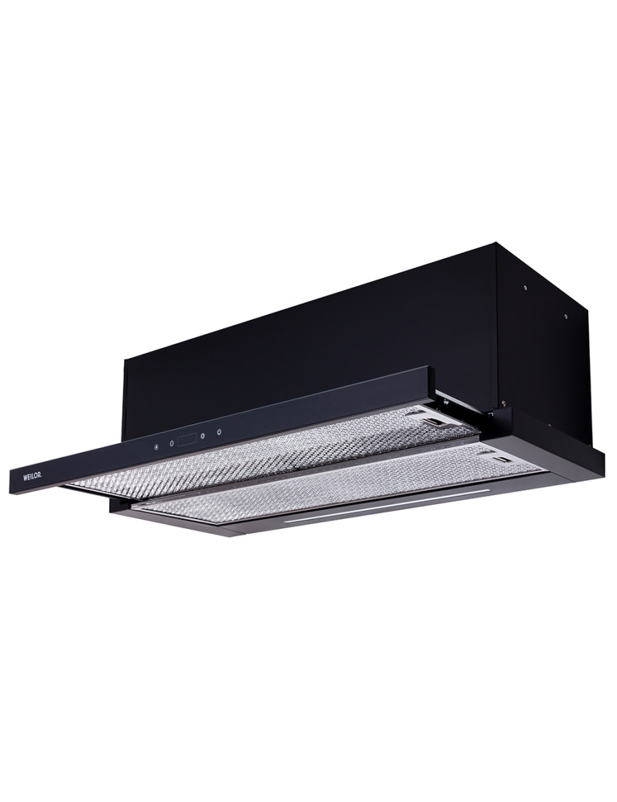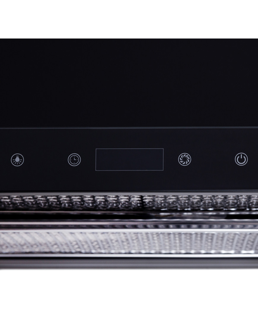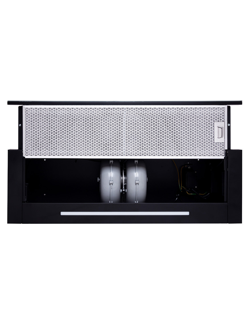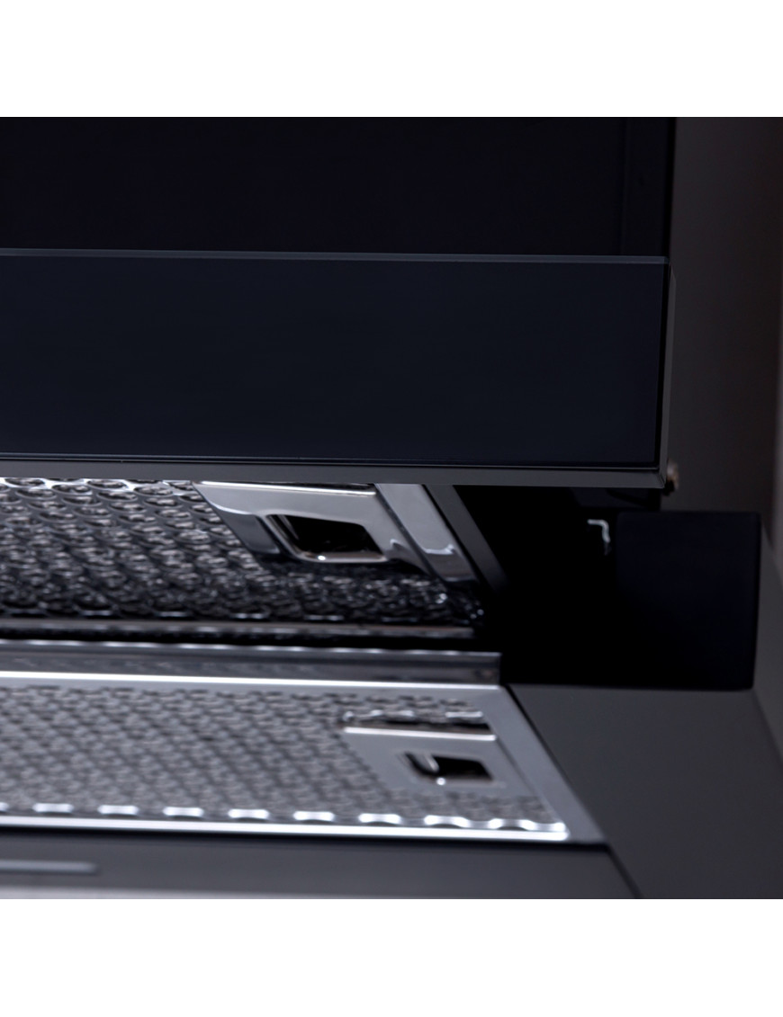 Телескопическая вытяжка, мощность мотора 265W, ширина - 900 мм. Цвет вытяжки - чёрный. Материал вытяжки - окрашенный металл. Управление сенсорное. 3 скорости + 1 бустер. 1 мотор. Освещение 1х4 Вт. LED полоса. Алюминиевый фильтр с нержавеющей перфорацией. Отвод/Рециркуляция. Уровень шума 59-68 Дб