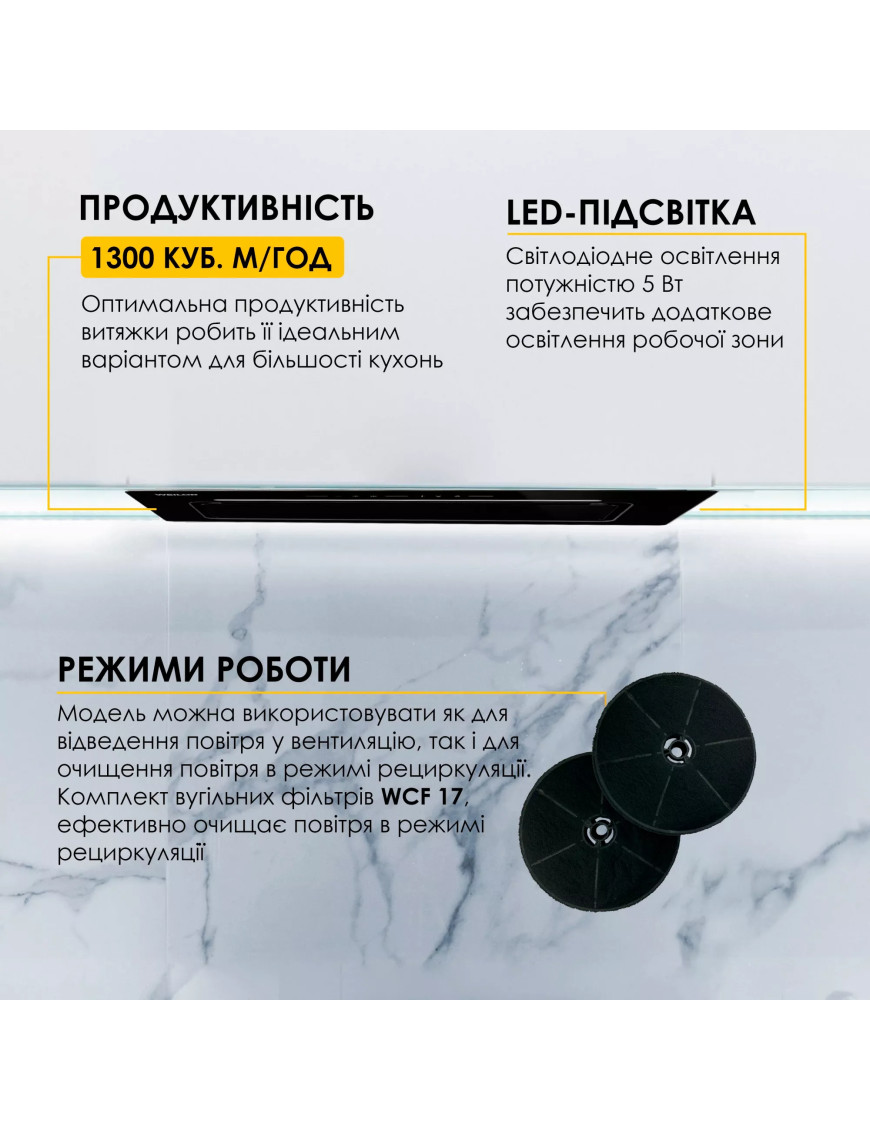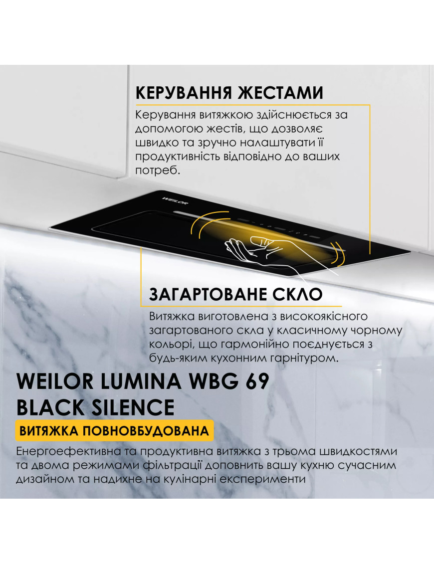 Вытяжка полновстраиваемая WEILOR LUMINA WBG 69 BLACK SILENCE