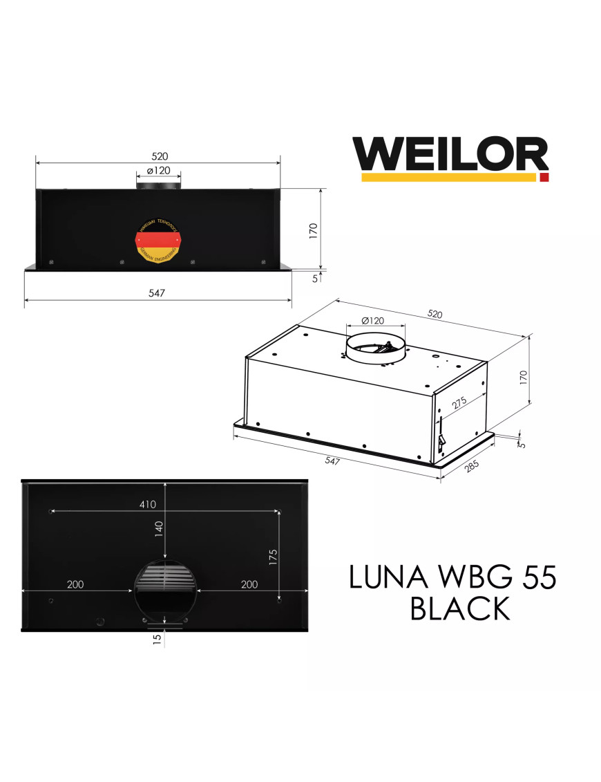 Вытяжка полновстраиваемая WEILOR LUNA WBG 55 BLACK