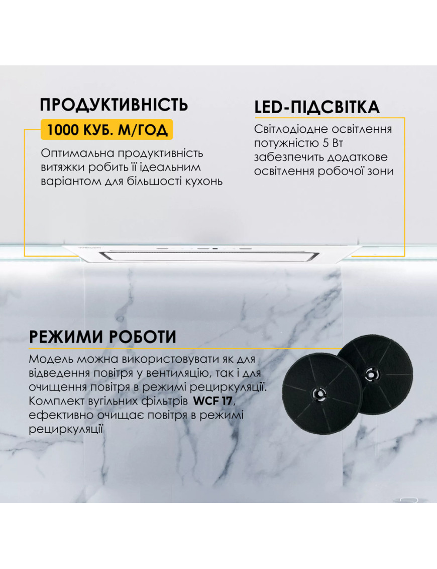 Вытяжка полновстраиваемая WEILOR LUMINA WBG 66 WHITE