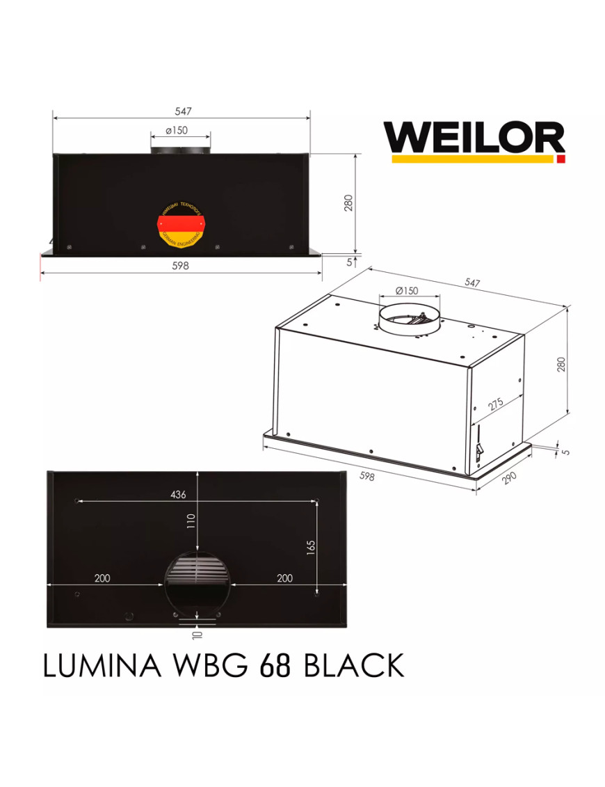 Вытяжка полновстраиваемая WEILOR LUMINA WBG 68 BLACK