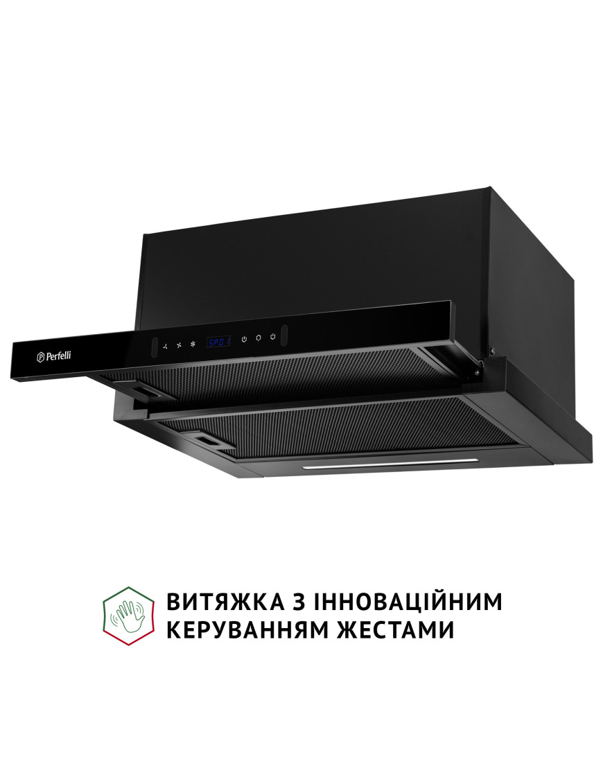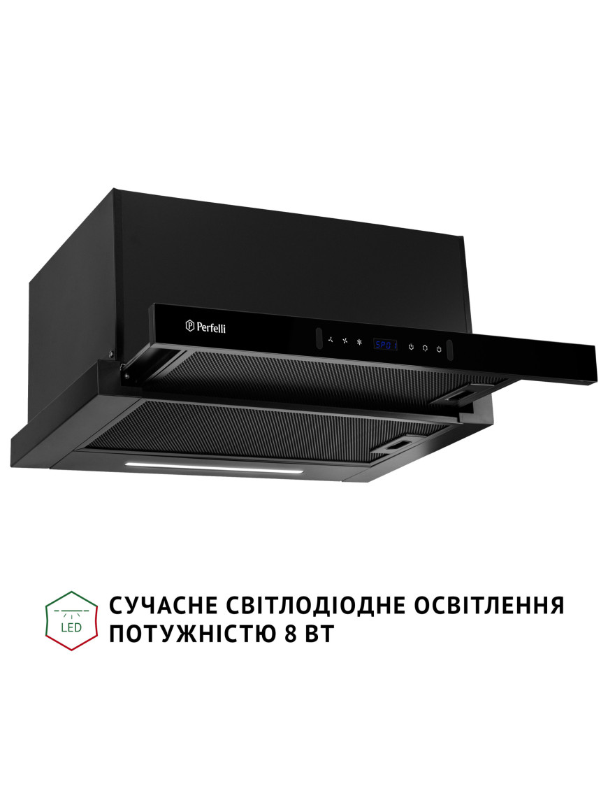 Телескопическая вытяжка PERFELLI ISEO 6PWB NERO привлекает дизайном и современным подходом в разработке вытяжек для всех, кто желает сделать свою кухню стильной и функциональной. Стандартная ширина 60 см позволяет использовать эту модель на кухне любых размеров.