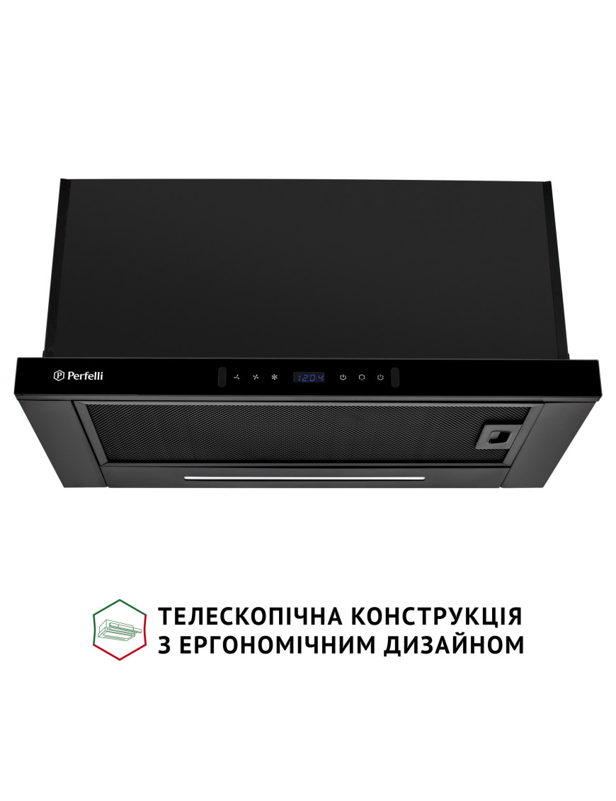 Телескопическая кухонная вытяжка PERFELLI ISEO 6PWB NERO обладает эргономичными свойствами, поэтому позволяет рационально использовать пространство в зоне над варочной поверхностью.