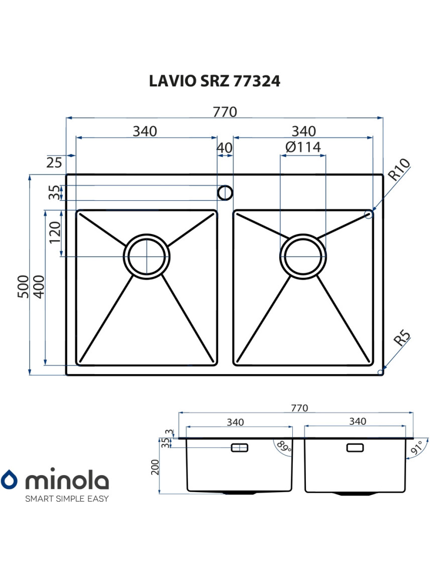 Мойка кухонная нержавеющая сталь Minola LAVIO SRZ 77324