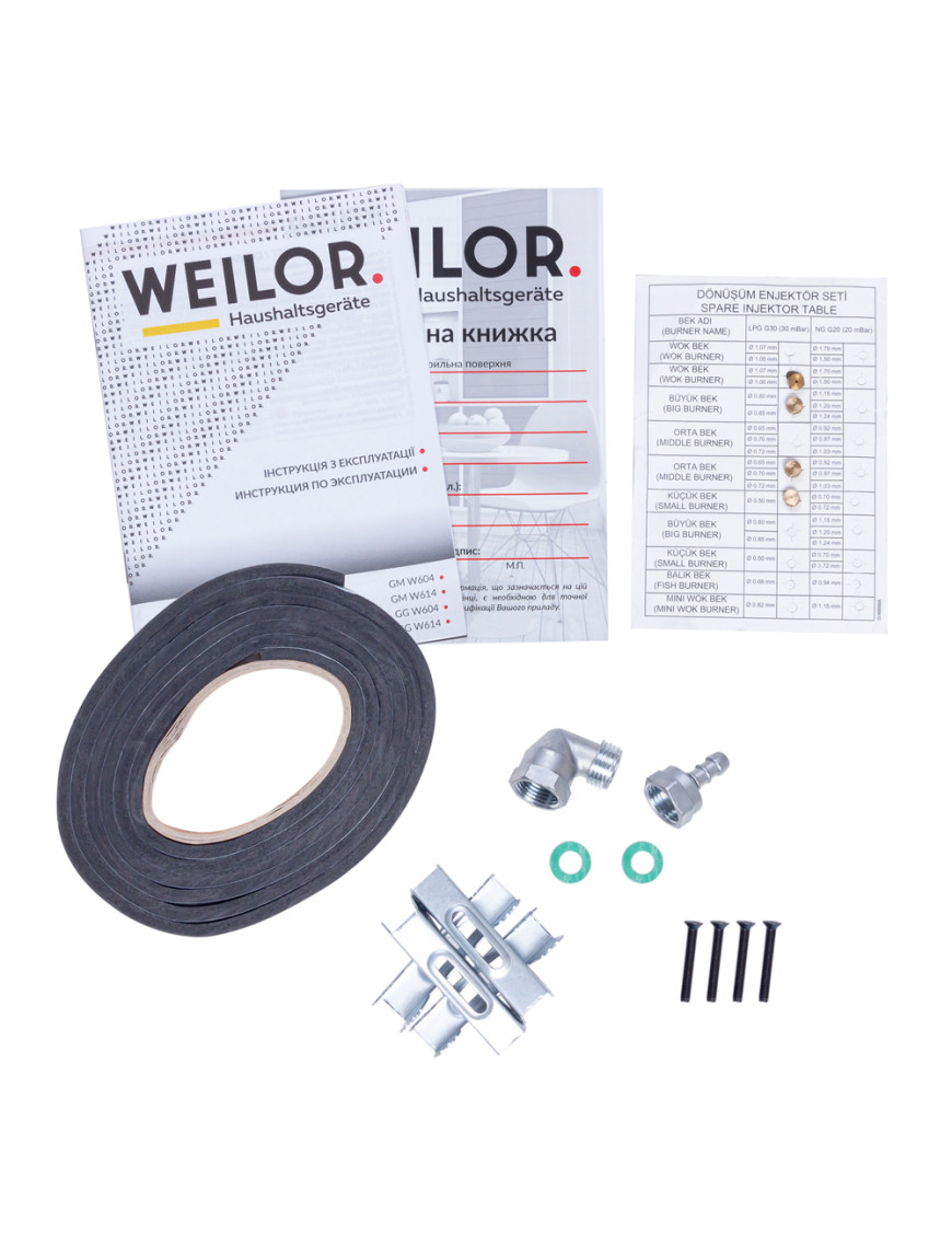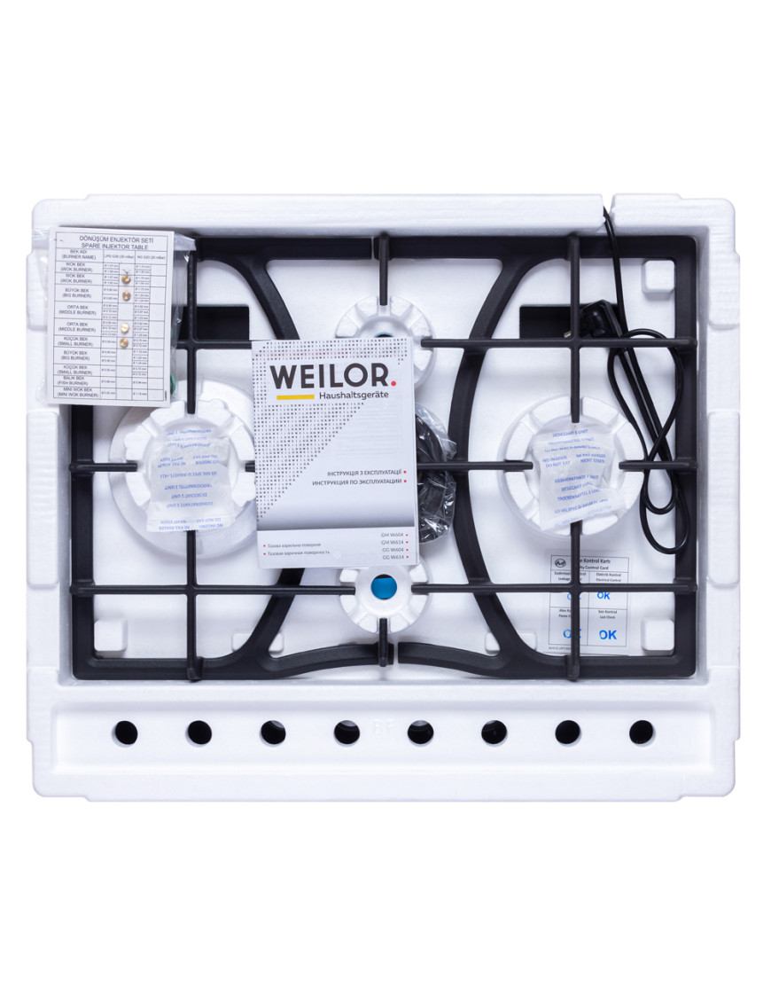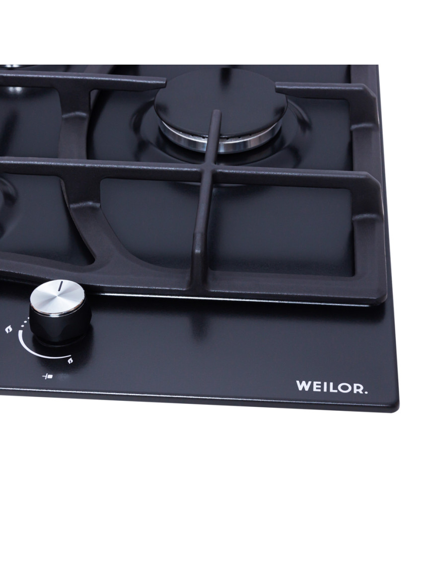 - Варочные поверхности Weilor оснащены системой "газ-контроль", которая автоматически блокирует подачу горючего вещества при отсутствии пламени и обеспечивает максимальную безопасность использования прибора.